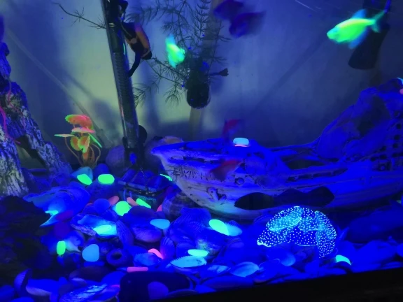 Хорошо принят. Это почти не светит! Бесполезно. Это пластик. Они немного легкие на мой вкус, чтобы положить в аквариум. Если вода не двигается, все в порядке. Дорогой разочарован за кусок пластика. Жаль.