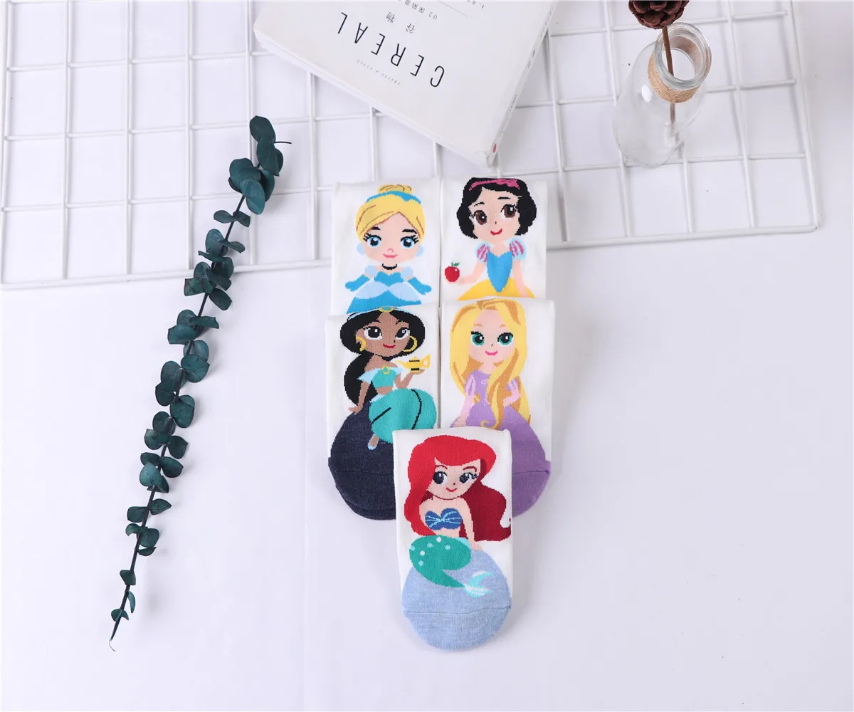 Disney Girl, Белоснежка, Русалочка, Золушка, Принцесса Жасмин, хлопковые носки с рисунком, спортивные милые повседневные носки для женщин