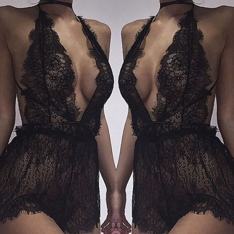 Пикантные Для женщин сексуальное нижнее белье с глубоким v-образным вырезом Холтер эротическая одежда Сорочки кружевное белье Ночная рубашка Bodydoll мягкий с низким вырезом на спине, одежда для сна