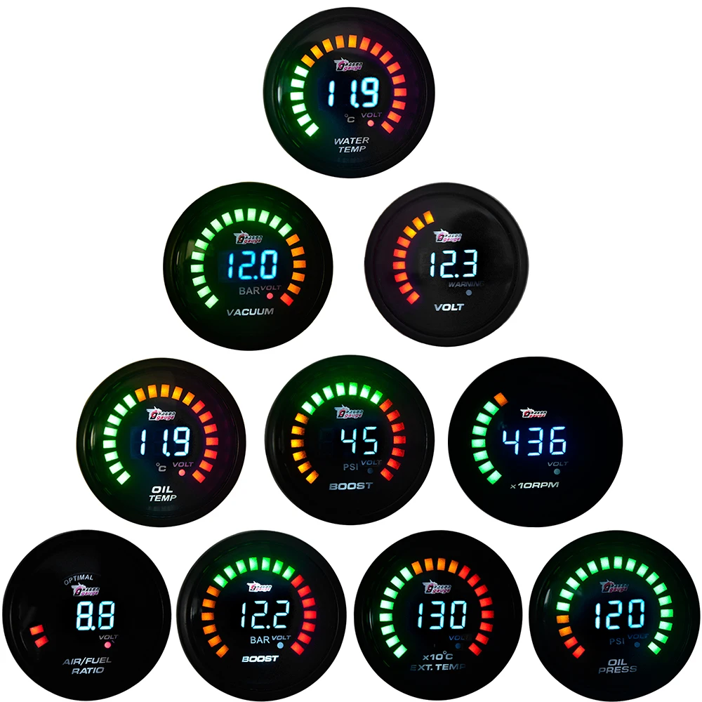 Манометр DRAGON 2 дюйма, 52 мм, наддувтемпература водыТемпература масладавление маслаТахометрНапряжениесоотношение воздуха и топливаEGTвакуумметр, цифровой