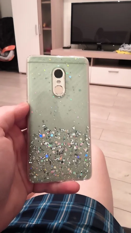 Чехол брала маме, приятный на ощупь, пластик мягкий, блестки не плавают, просто в чехле