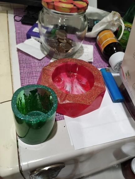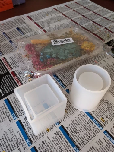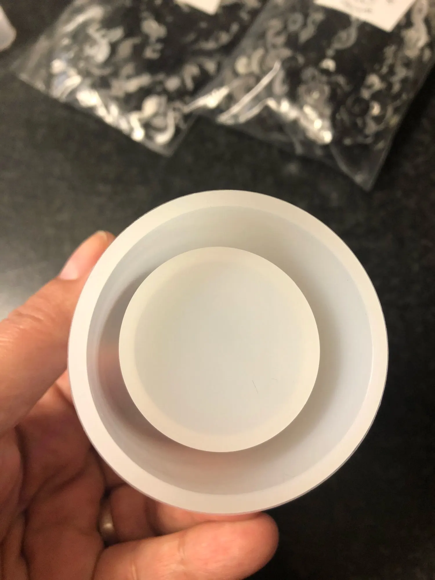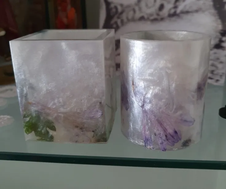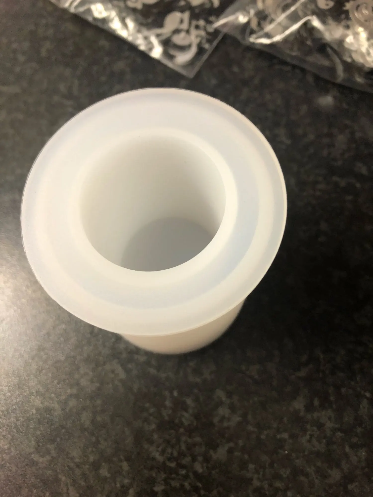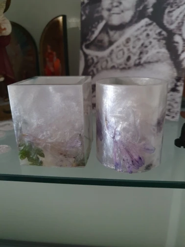 Молд пришёл деформированным, сплюснутым. Постоял, расправился. Качество неплохое, хотя есть на отлитой модели небольшие царапины и полосы от молда, в прозрачном варианте придётся полировать. Использую как форму для подсвечника, для ручек - маленькая, низкая, не понравилось.