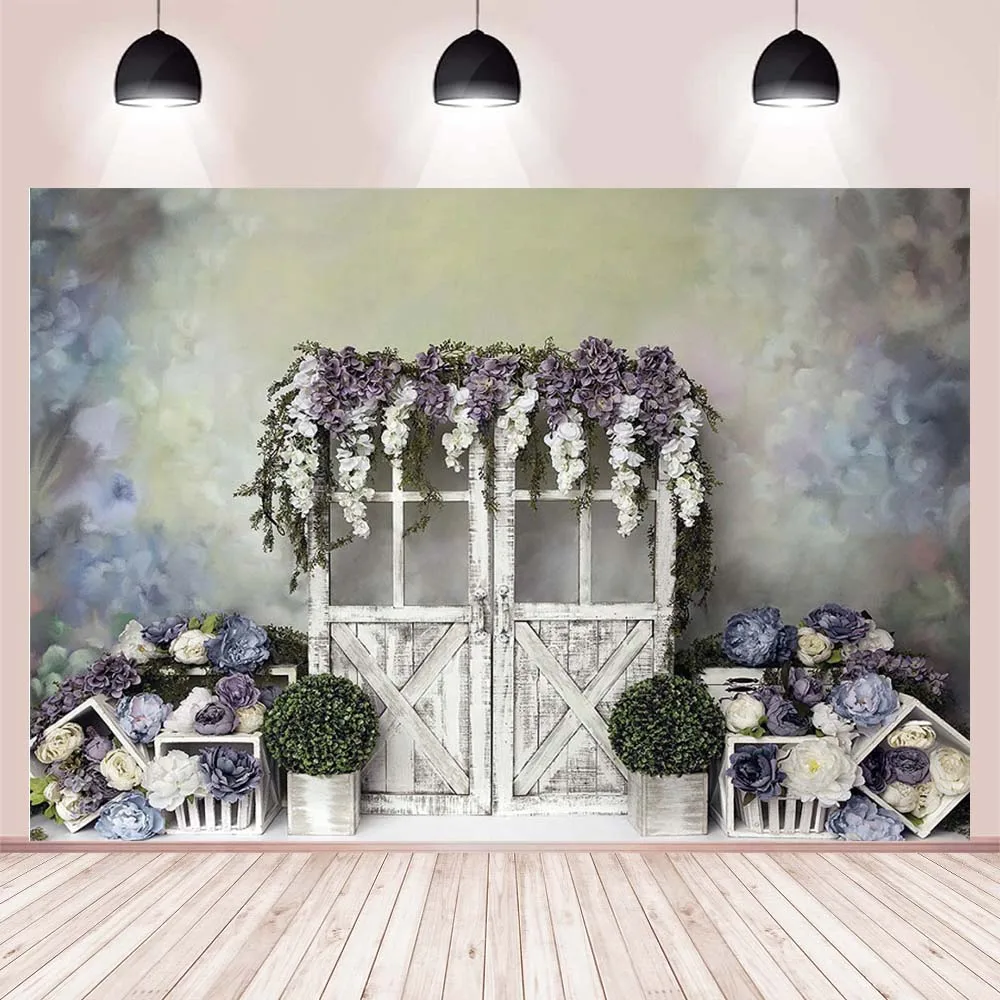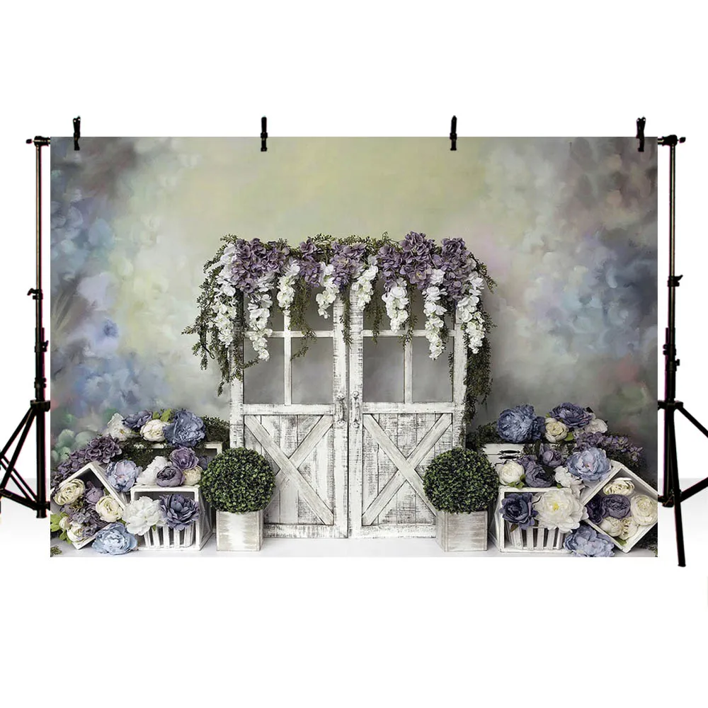 Фотофон Avezano сад фиолетовый цветок белая деревянная дверь Новорожденный ребенок душ свадебный фон фотостудия Фотофон