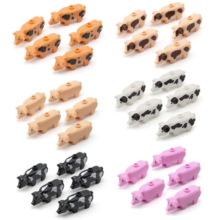 Игрушечные строительные блоки для фигурки свиньи, 6 цветов