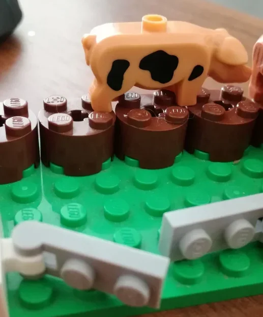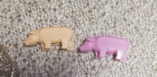 Милая маленькая свинка. В отзывах почему-то писали, что у нее нетиповое крепление и она не становится на пластины лего. Это не так. На оригинальные пластины свинка КРЕПИТСЯ. Правда, не с первого раза может получиться, но на фото видно, что всё отлично