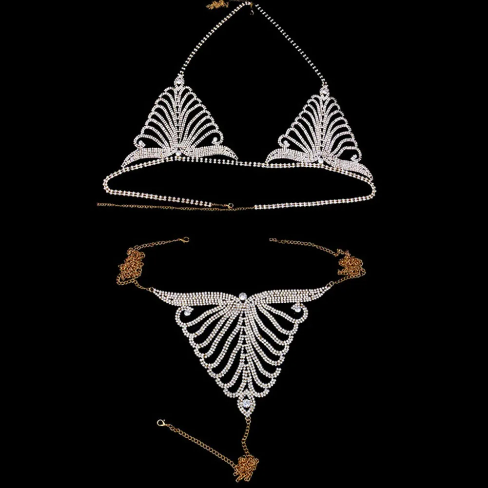 Женский комплект бикини, сексуальный Хрустальный бюстгальтер с цепочкой и бижутерия, модный красивый со стразами