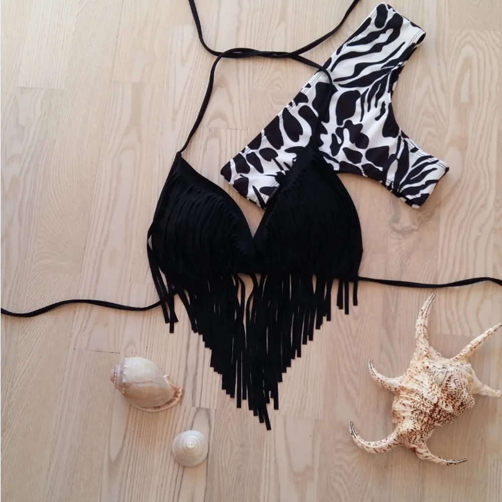 Пуш-ап Мягкий бюстгальтер, купальник для купания, сексуальный женский комплект бикини с кисточками, купальник