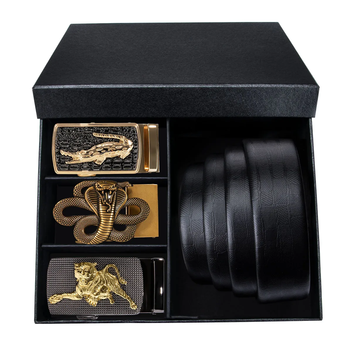 Информация о товаре: три автоматические пряжки из сплава и высококачественный кожаный ремень в красивой черной подарочной коробке Материал ремня: Воловья кожаКожаМатериал пряжки: сплав Ширина ремня: 3,5 см, длина ремня 110-160 см Посылка: DiBanGuЧерная подарочная коробка