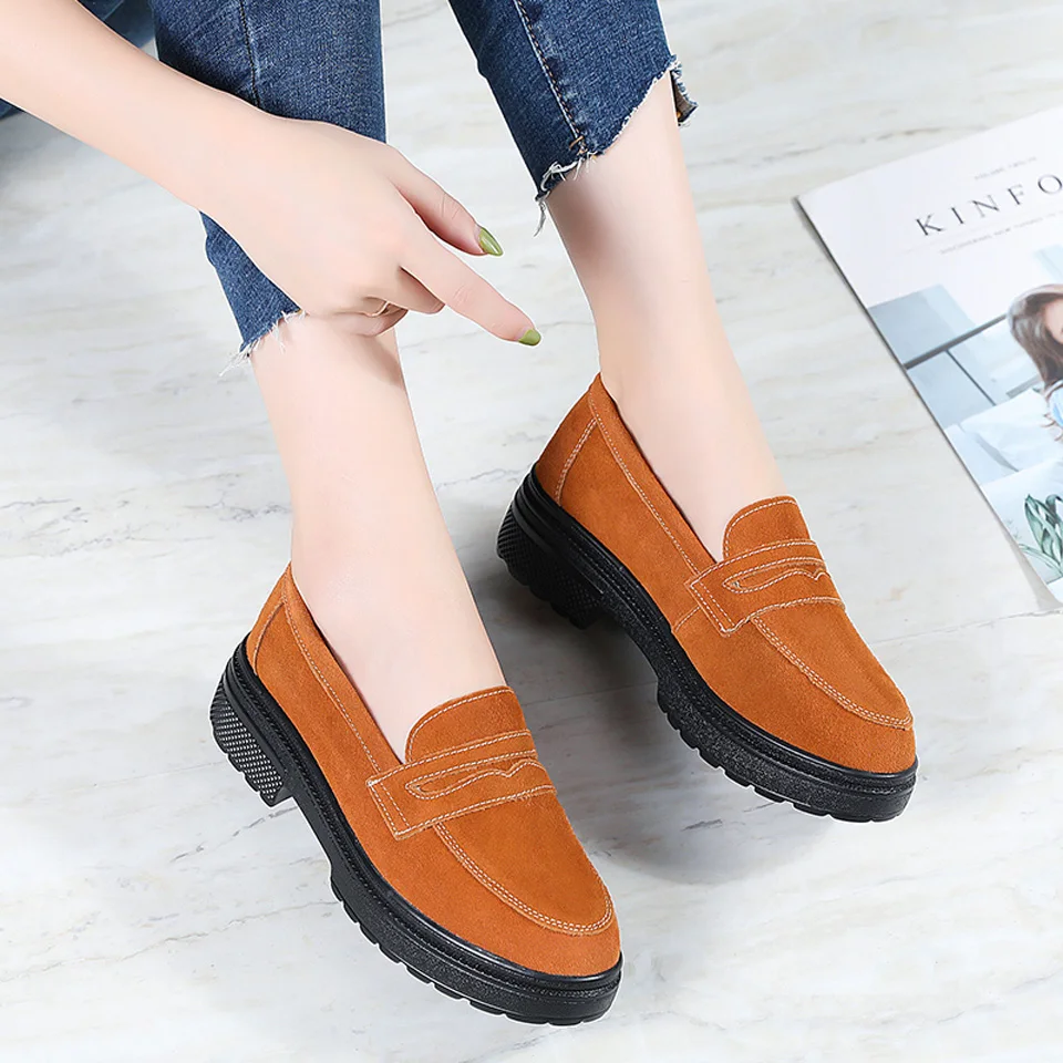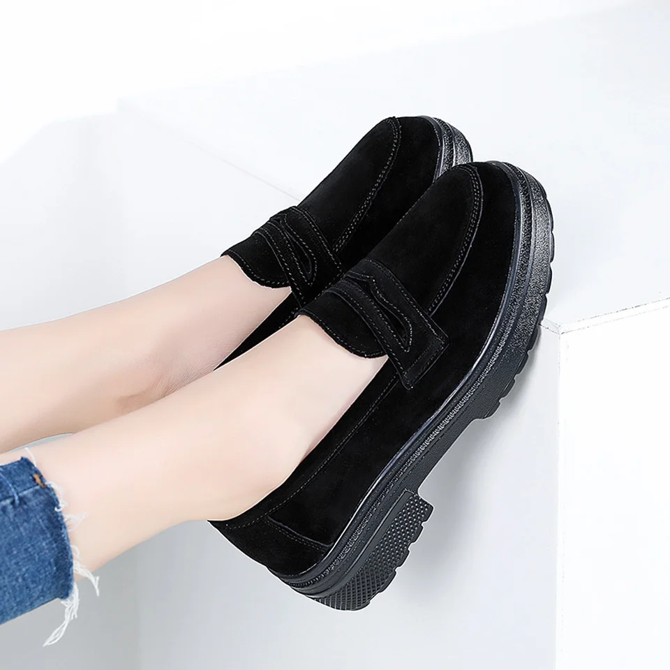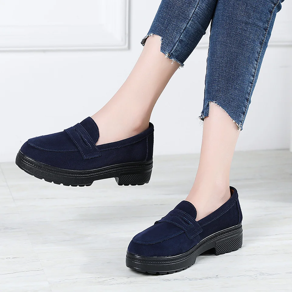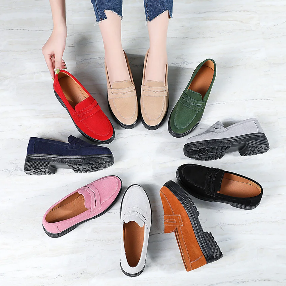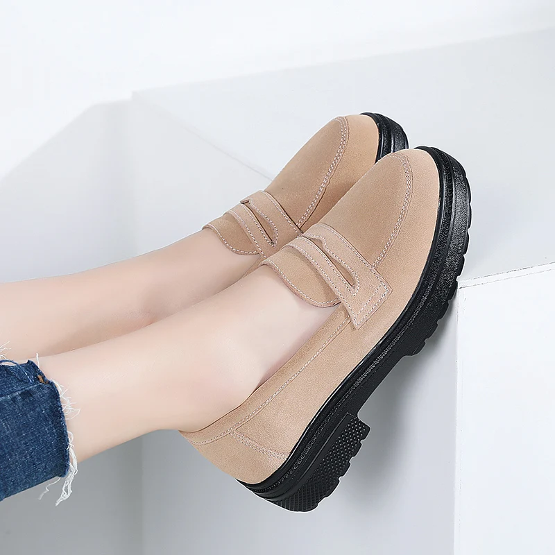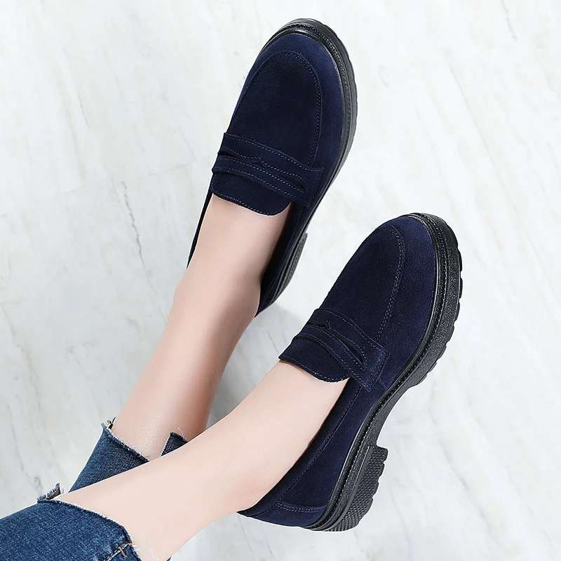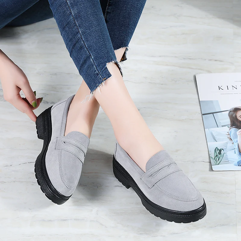 Женские замшевые мокасины EOFK, на низком квадратном каблуке, повседневные туфли без застежки, весна-осень 2020