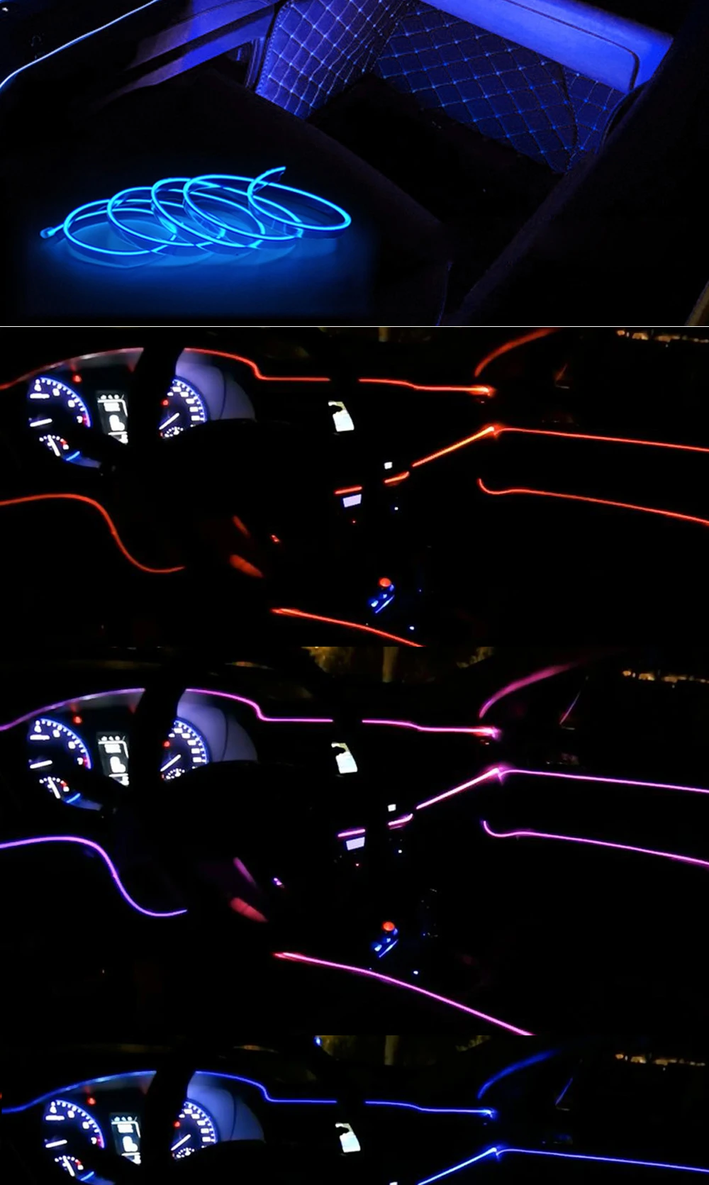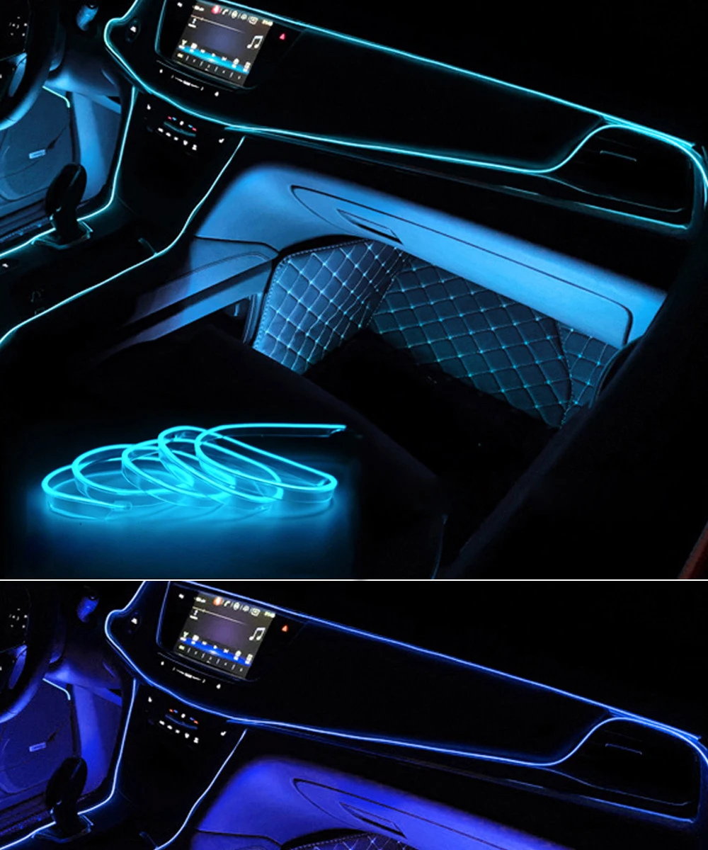 5 м автомобильная лента, линейный светильник, внутреннее освещение автомобиля, гибкий неоновый светильник с контроллером прикуривателя, автомобильные аксессуары светодиодный лента