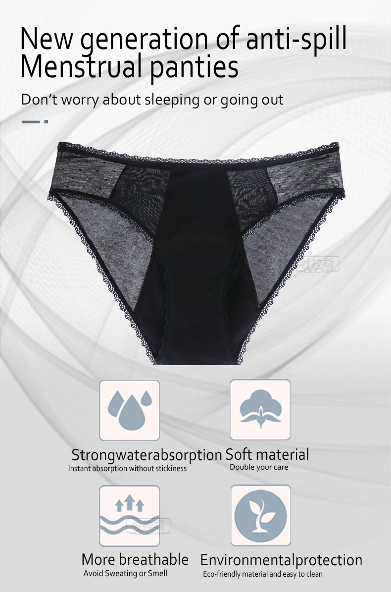 Сексуальные женские менструальные трусики, недержание, физиологическое Впитывающее белье, 4 слоя, герметичное Сетчатое нижнее белье с высокой талией DULASI