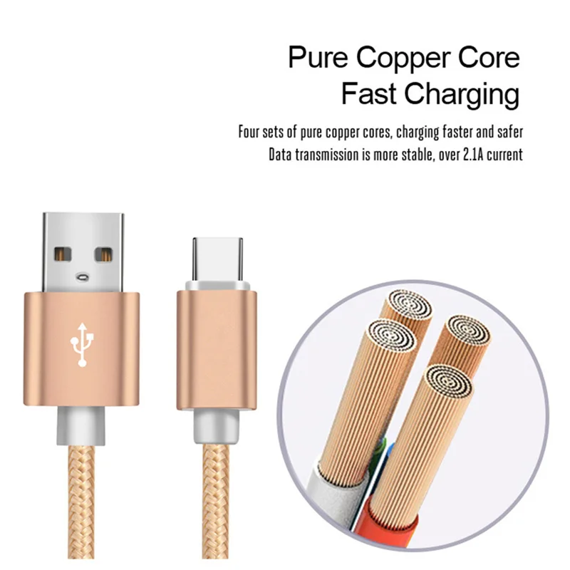 Кабель USB Type-C, нейлоновый кабель для быстрой зарядки для Samsun...