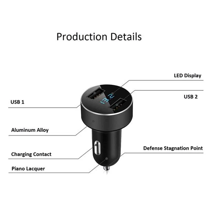 Feature2LED Display Dual USB Car Charger