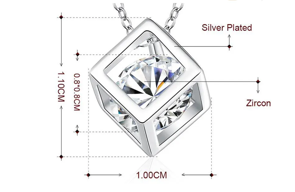 Женское Ожерелье с кулоном из серебра 925 пробы с квадратным криста...