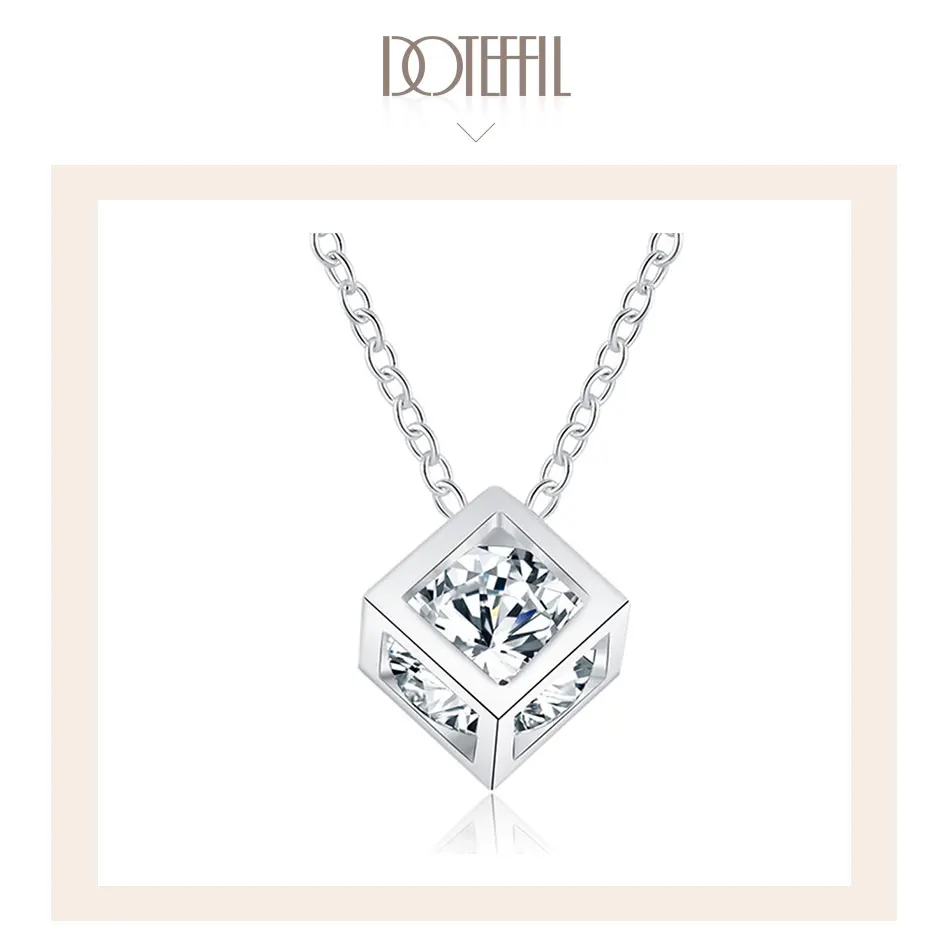 Женское Ожерелье с кулоном DOTEFFIL из стерлингового серебра 925 пробы, 18 дюймов, с кубическим цирконием ААА, ювелирные украшения для свадебной вечеринки