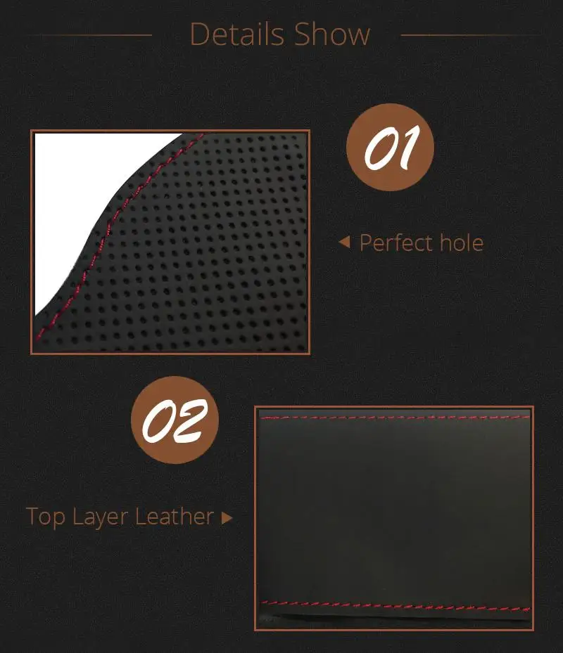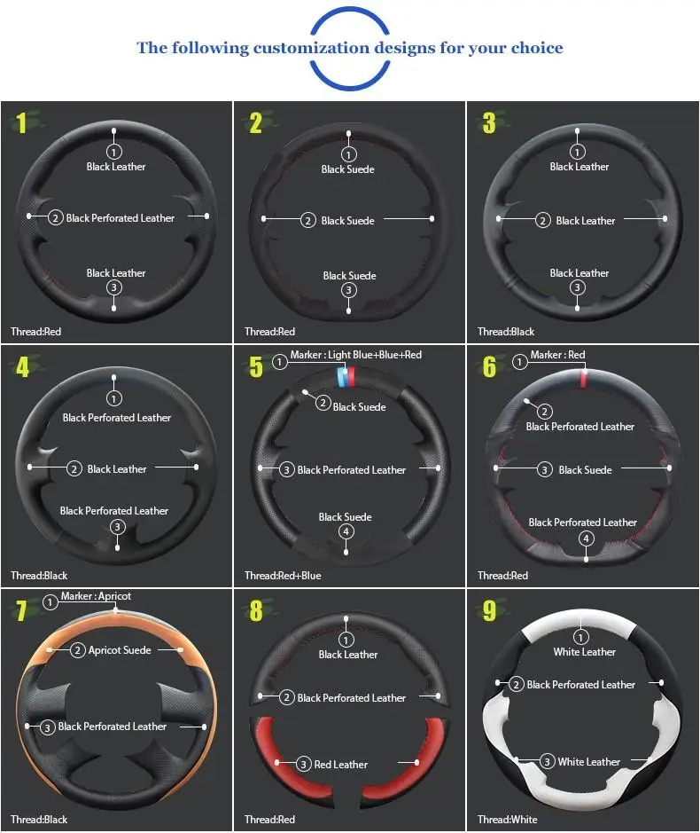 * Добавьте стиль к вашему рулю с нашим противоскользящим верхом кожаный чехол рулевого колеса автомобиля крышка руля. Не только улучшая внешний вид старого и грязного руля s, это также позволит вам чувствовать себя более комфортно при обращении с рулем. Крышка рулевого колеса также предлагает уникальное украшение для вашего автомобиля и является отличной заменой поврежденного и изношенного оригинального завода кожаного покрытого руля s. Ваш руль будет абсолютно новым, отличным и профессиональным.* Изготовлен из высококачественной и прочной кожи, которая, несомненно, прослужит превосходно год за годом, не выцветая. Крышка рулевого колеса обеспечивает очень удобное ощущение вокруг обеспечивает более безопасную работу с точки зрения захвата вашего руля.* Крышка рулевого колеса будет сшита самостоятельно нитью и иглой, что подарит вам удовольствие от DIY. Пошив крышки рулевого колеса требует большого терпения иКонцентрации, длительный процесс, который оставит вас очень доволен в конце.Особенности:1,100% новый бренд2, дышащий, удобный и противоскользящий свитер, обеспечивает очень комфортное ощущение всего круглого руля3, пошив самостоятельно нитью и иглой, Наслаждайтесь DIY удовольствием4, отлично подходит для замены поврежденных или изношенных Оригинальных Заводских кожаных покрытых рулей5. Цвет: на заказ многоцветныйТовар включает в себя:Крышка рулевого колеса * 1Набор инструментов для нитей и игл * 1