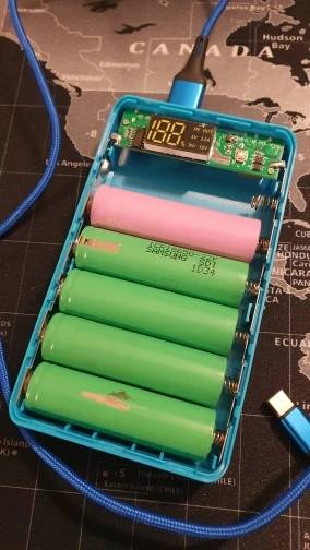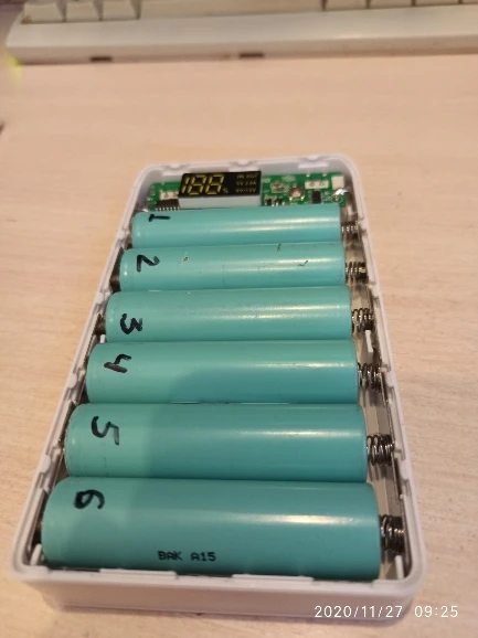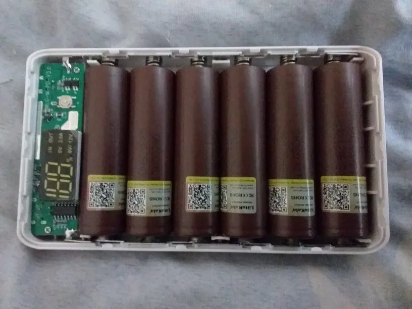 Хороший бокс. Проверил его на разряд и заряд USB-тестером. На 5 х LiitoKala HG2 по 3000 mAh + 1 х Panasonic на 3000 mAh (не помню модель) вышла емкость в 81.2 Wh =~ 21968 mAh при 3.7V, или 19333 mAh при 4.2V, или 16256 mAh при 5V, т.е. как и должна быть. При 5V 1A разряжался где-то 11 ч. 30 мин. Заряжался при 5V 1A чуть побыстрее. Индикация верная. Единственный недостаток -- на защелках. Если понадобится открыть, неизвестно выдержат ли они. Но там есть пустое место, куда можно вкрутить винты, если что. Дошло до Москвы за 6 дней -- это рекорд.