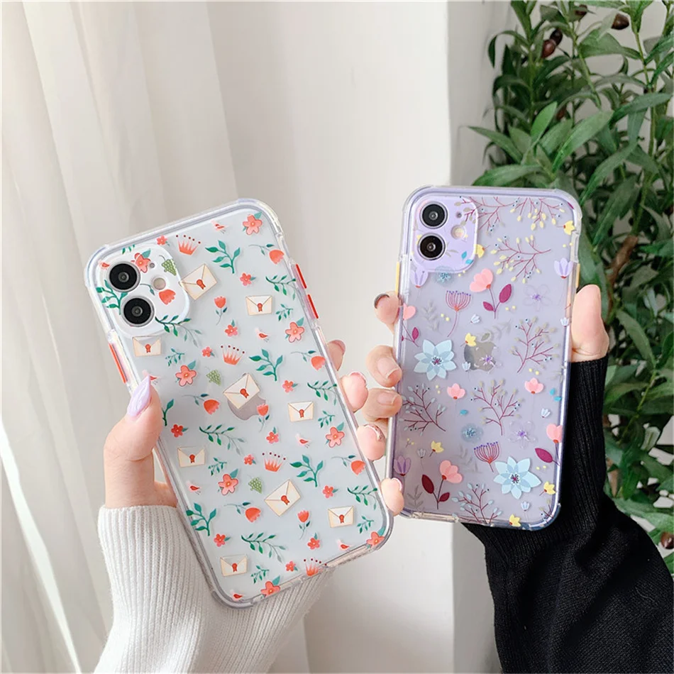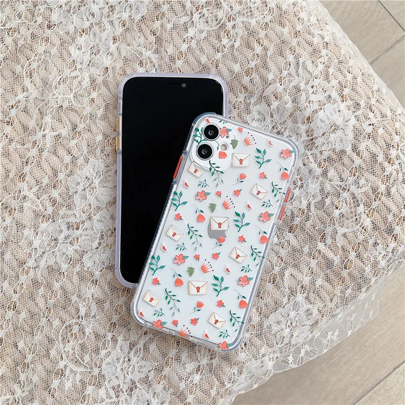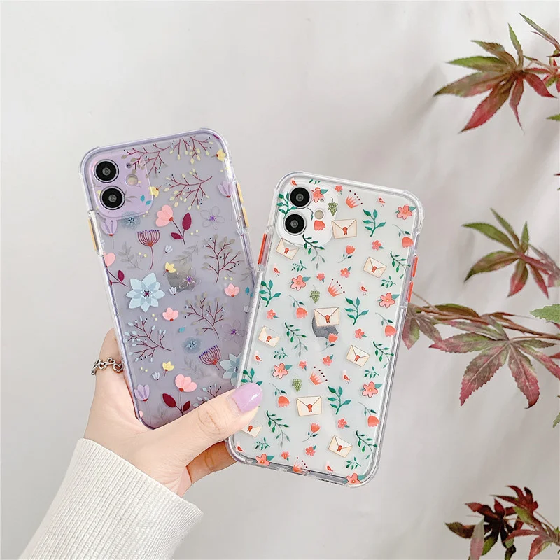 Design 1For iPhone 11 Pro Max Clear Cute Floral Fundas Back Cover