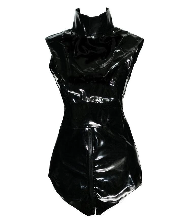 Комбинезон женский, из лакированной кожи, с мокрым эффектом, черный, блестящий, на молнии, для танцев на пилоне