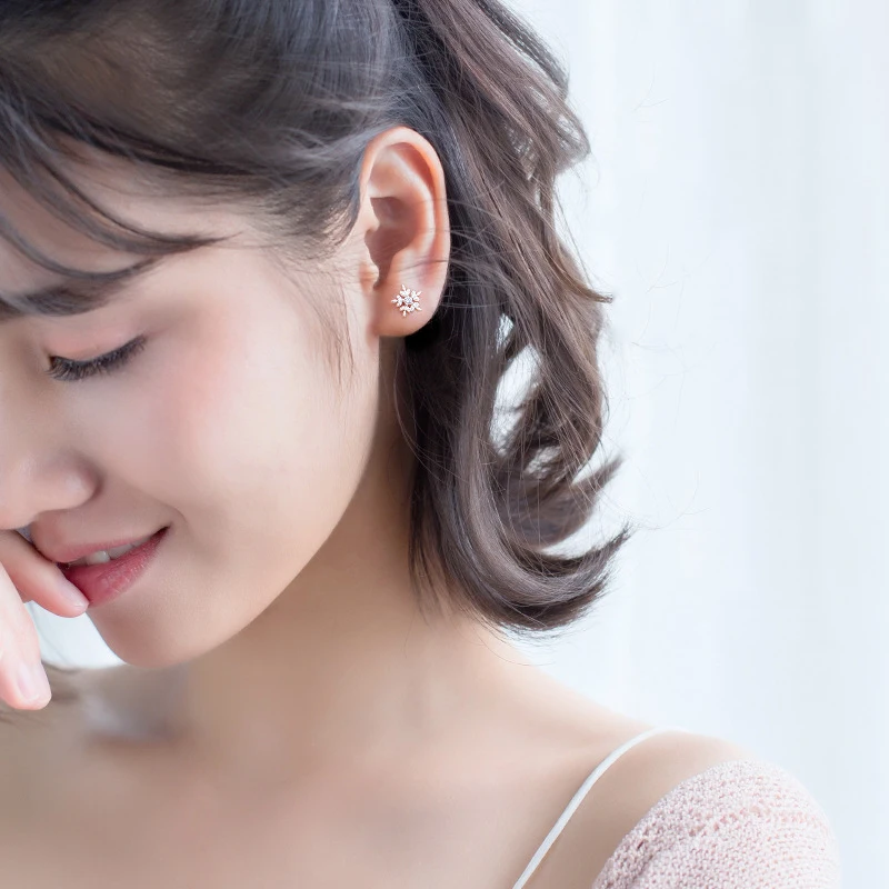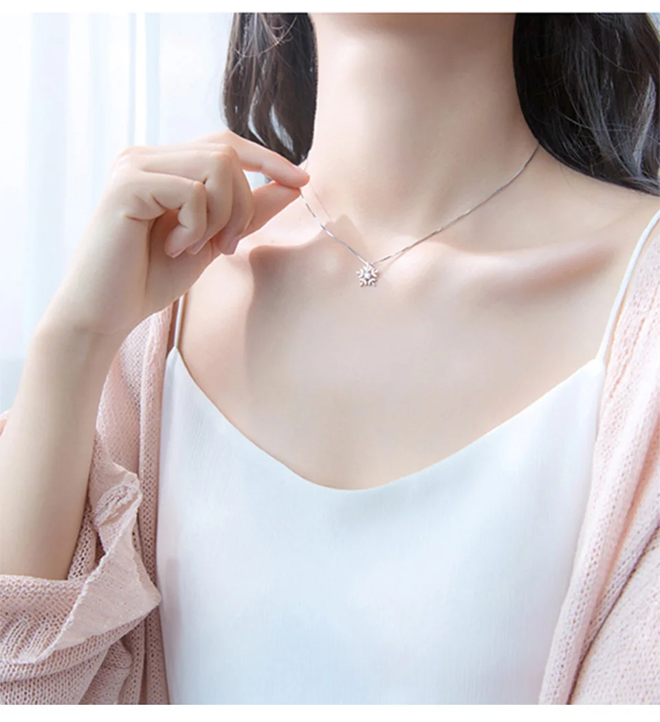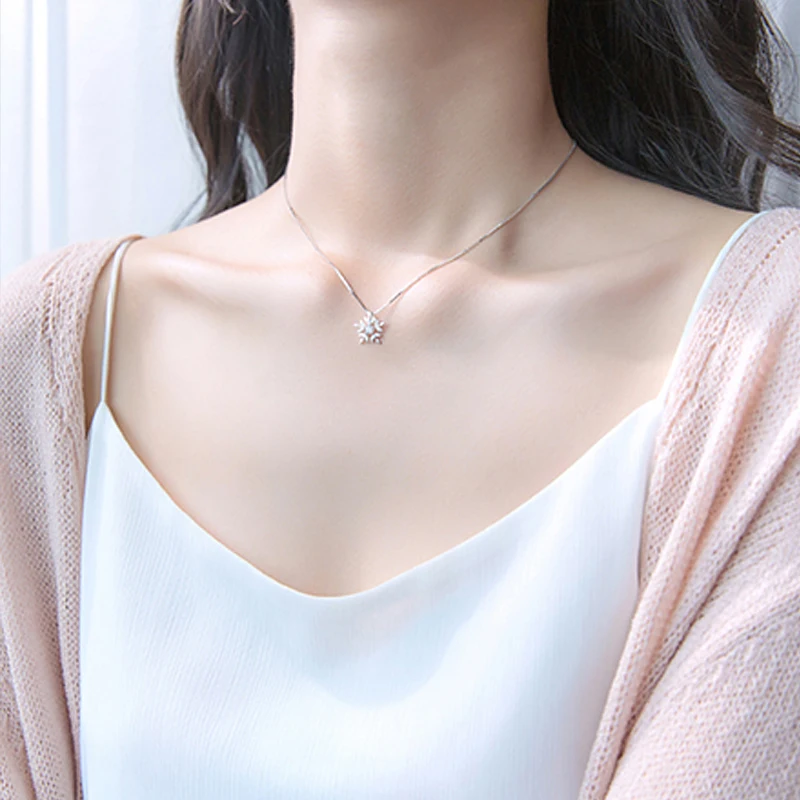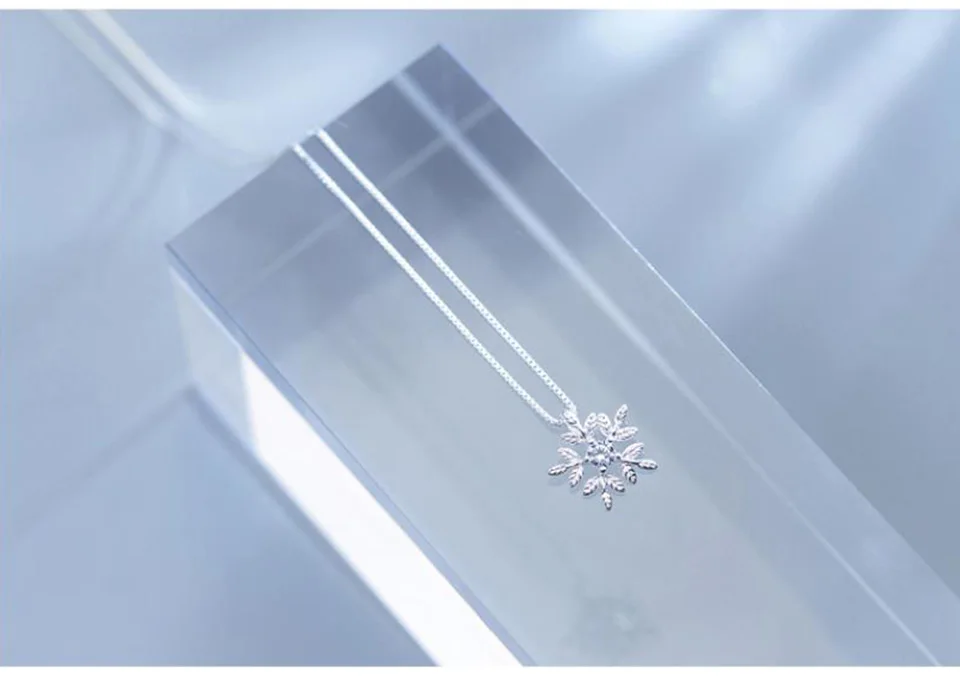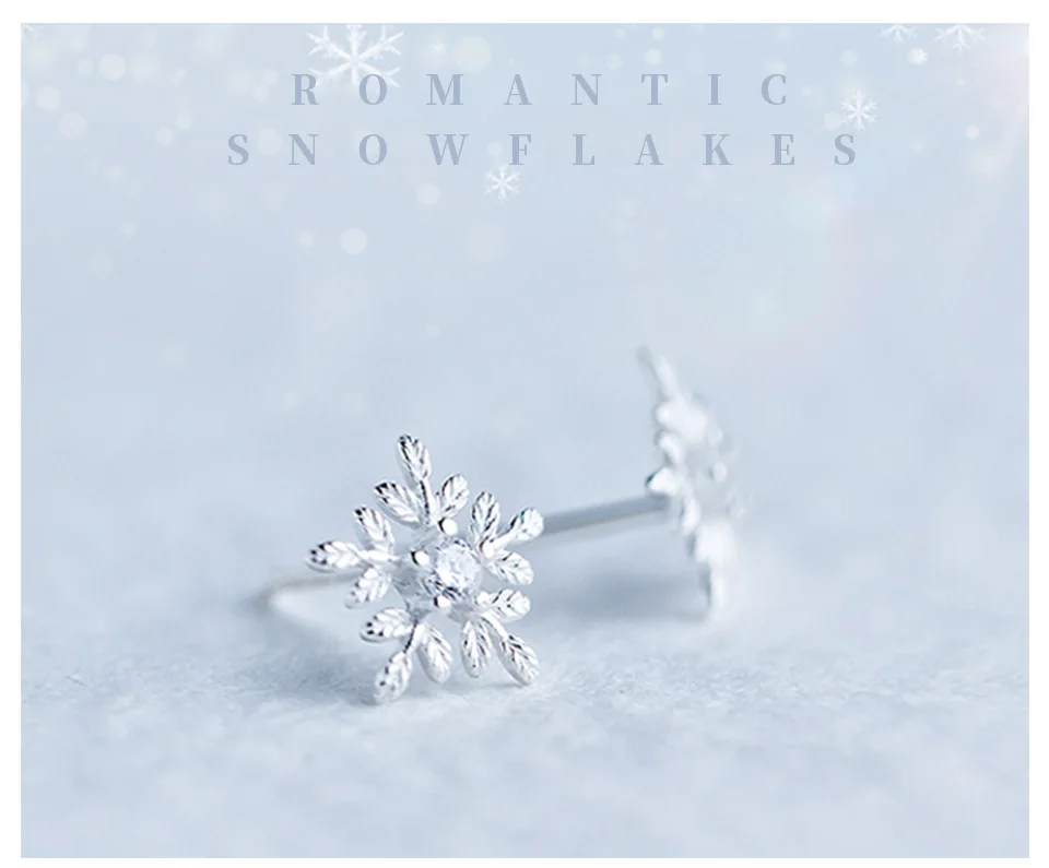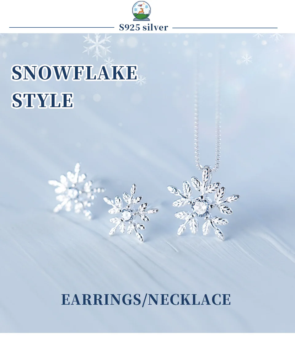 Простой стиль Снежинка ключицы Кулон Ожерелье S925 Серебряный цвет серьги гвоздики женские Рождественские Свадебные ювелирные изделия подарок