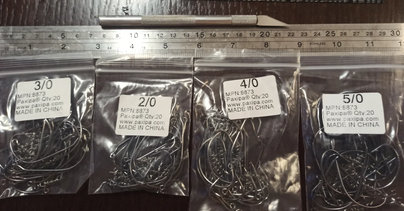 Мне нужен размер 10/0, но 7/0 хорошо выглядит для моей приманки. (15-16 см) Кажется твердым, просто нужно попробовать, когда этот вид будет под контролем.