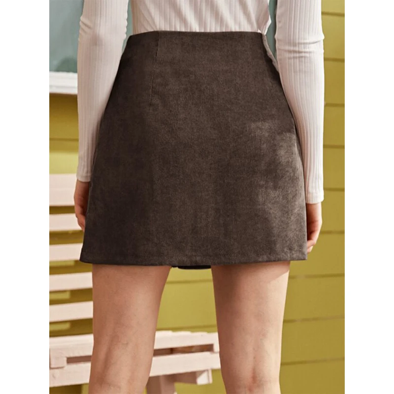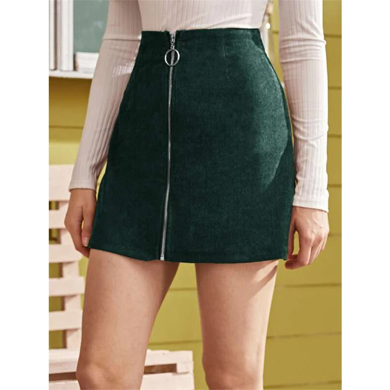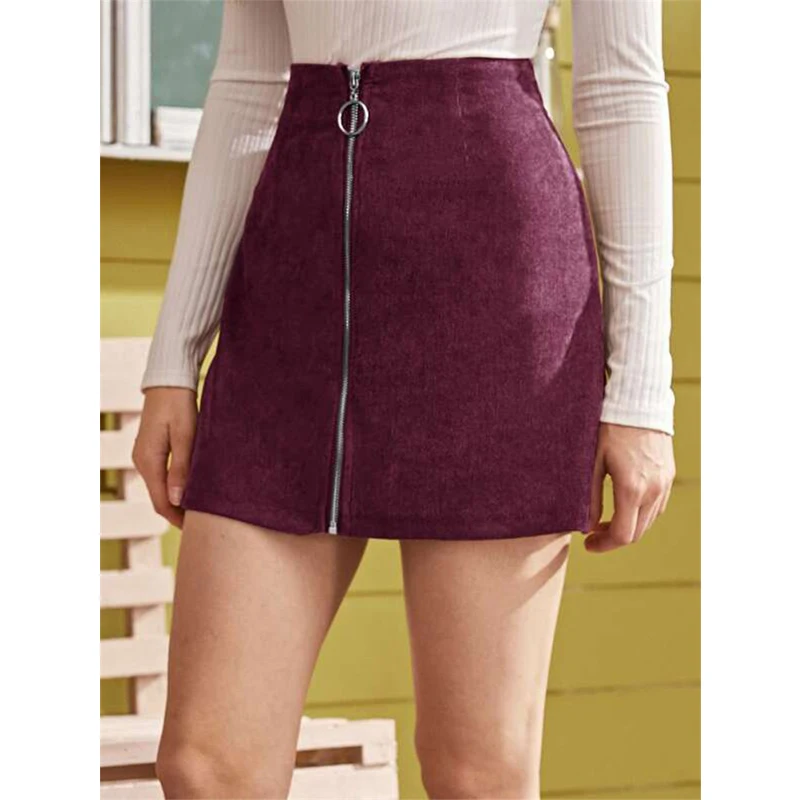 Юбка женская Вельветовая на молнии, короткая винтажная Повседневная, с завышенной талией, на пуговицах