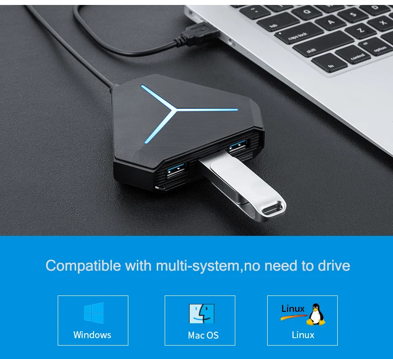 * Полностью совместим с USB спецификацией версии 3,0;* Кабель длиной 1 м, подходит для настольных usb-устройств;* Со светодиодным индикатором, чтобы показать состояние устройств;* 3 вида стилей выбора для выбора, учитывайте ваши различные потребности:* Рассчитан на 6-порт, этот компактный USB3.0 высокоскоростной концентратор достаточно мал для поездок, и кабеля достаточно, чтобы удовлетворить ваши потребности в подключении.