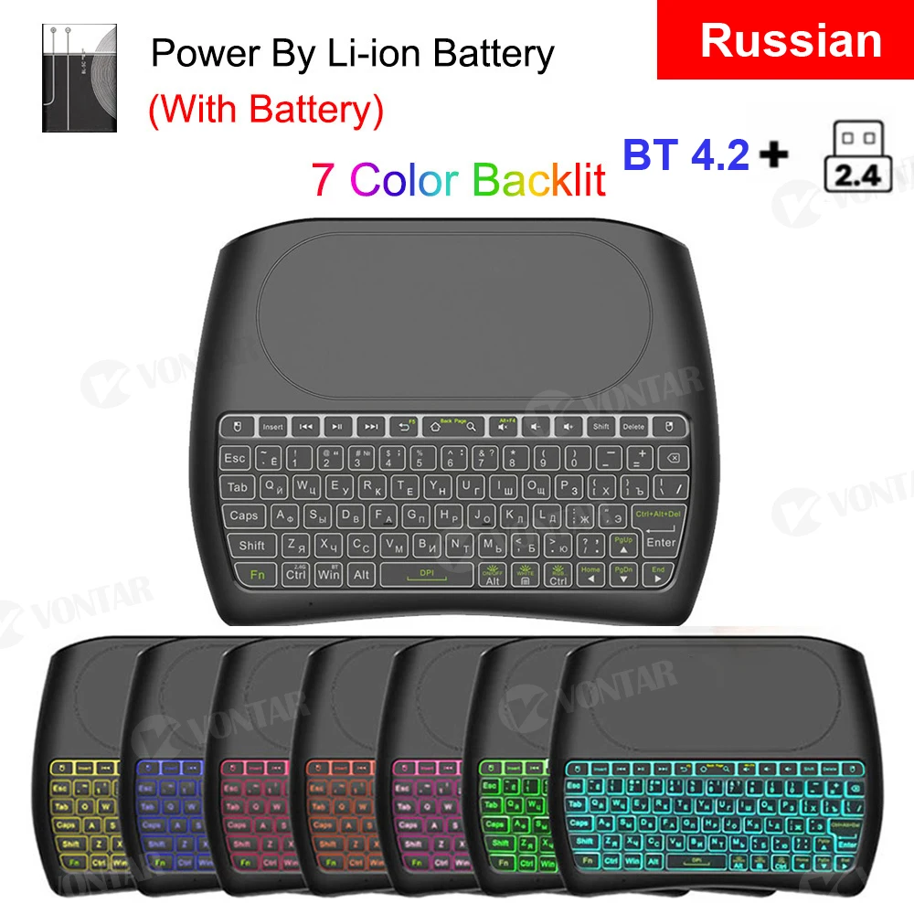 Bluetooth-клавиатура VONTAR D8 Super, 2,4 ГГц, Air mouse с гироскопом, перезаряжаемая батарея, для IOSAndroidТВ-приставкиПК