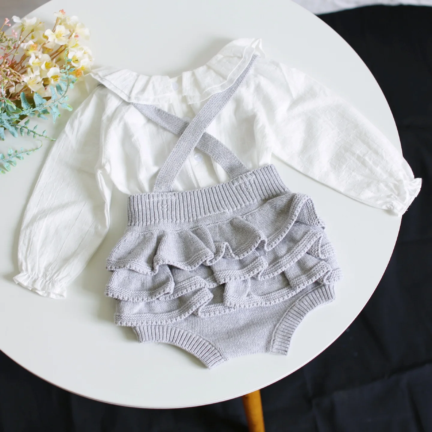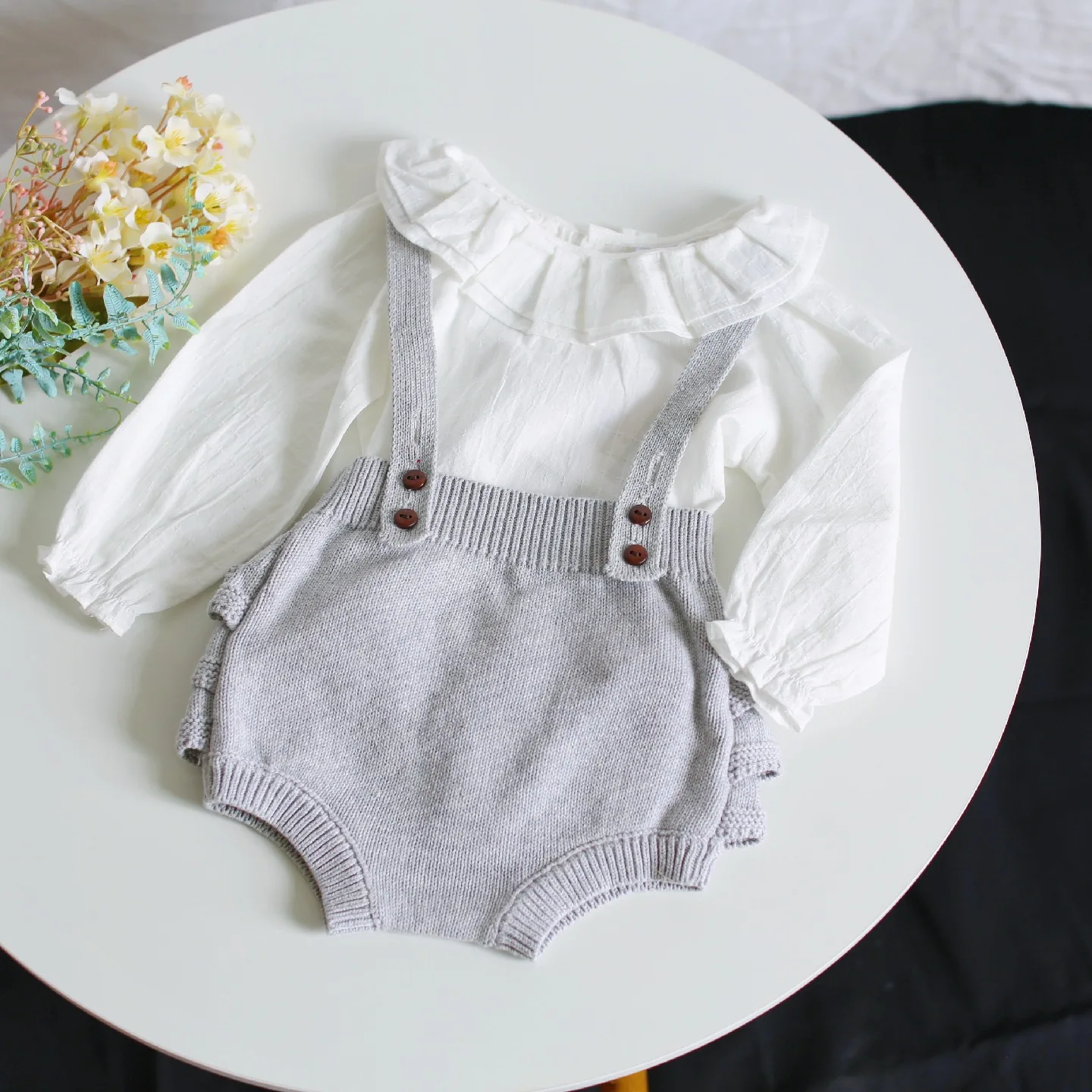 Комбинезон детский вязаный с оборками, костюм новорожденного ребенка, хлопок