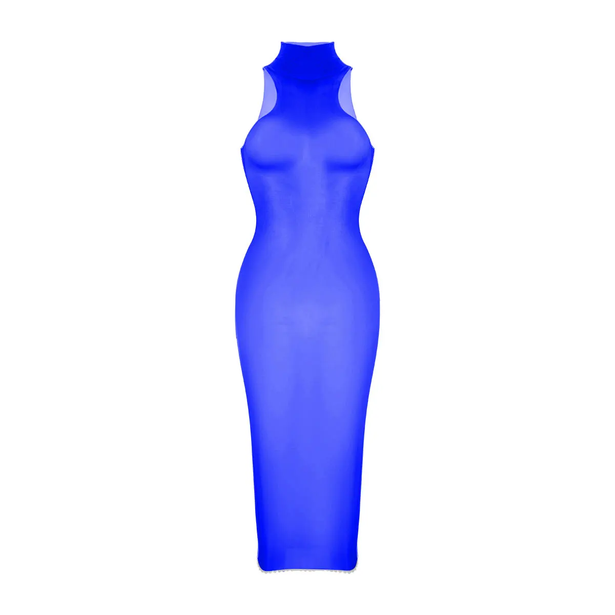 Женское Прозрачное мини-платье iiniim, ультратонкое Шелковистое прозрачное облегающее платье-чулок средней длины без рукавов