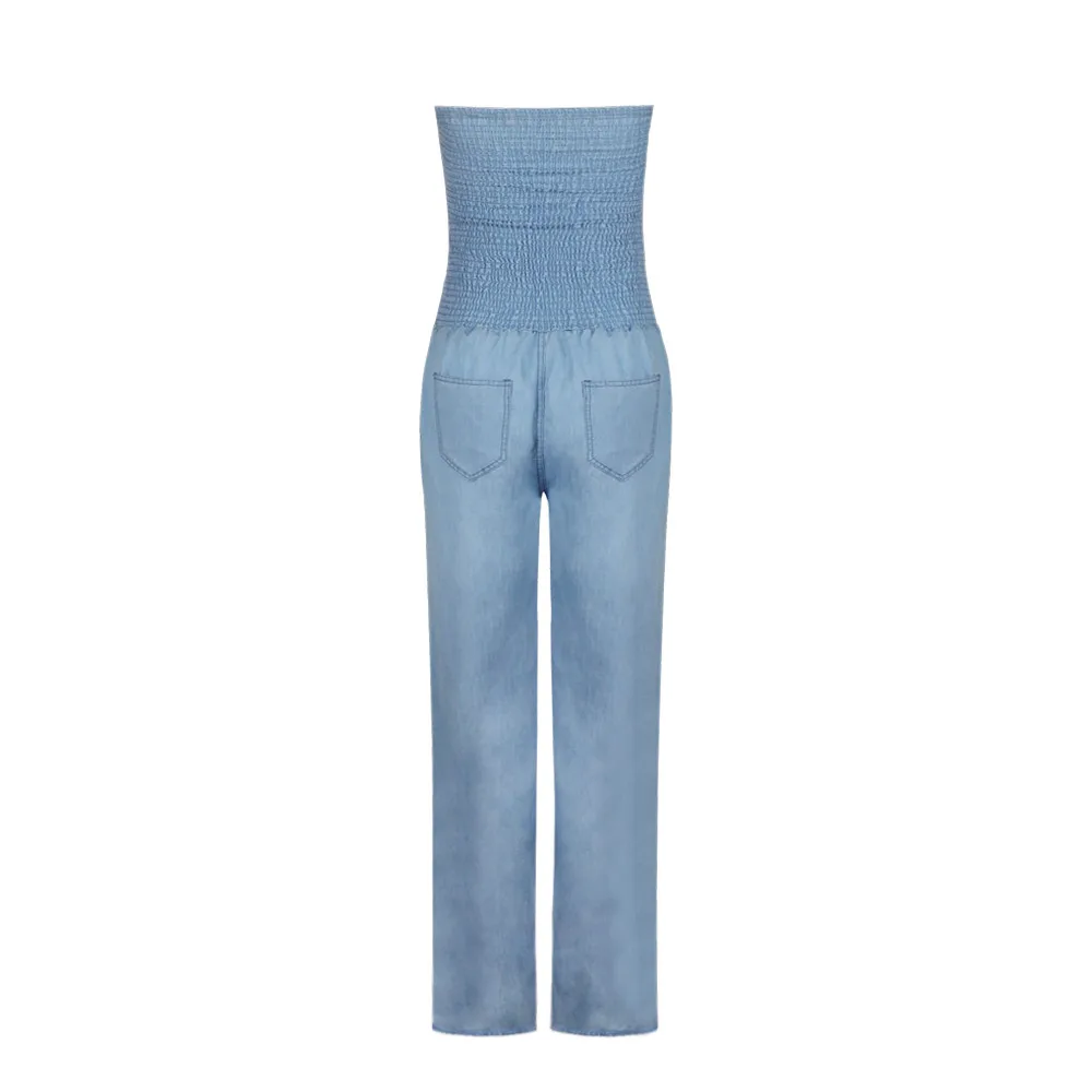 Комбинезон женский джинсовый, 3h, с открытыми плечами, мешковатый, штаны, размера плюс