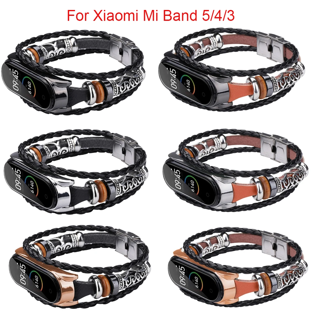 Ремешок для смарт-часов Xiaomi Mi Band 5 4 3, роскошный плетеный браслет с металлической рамкой, ремешки для Miband 5 4 3 Mi 5