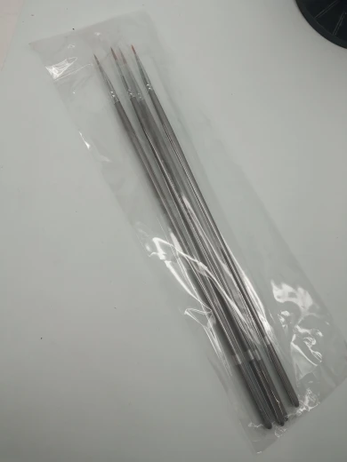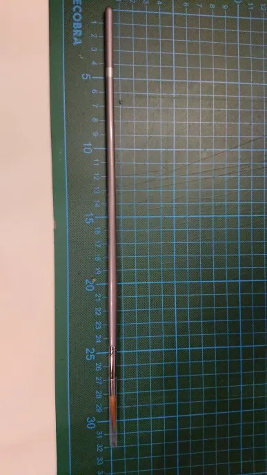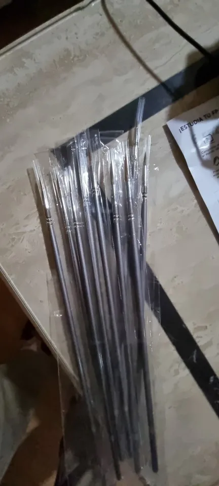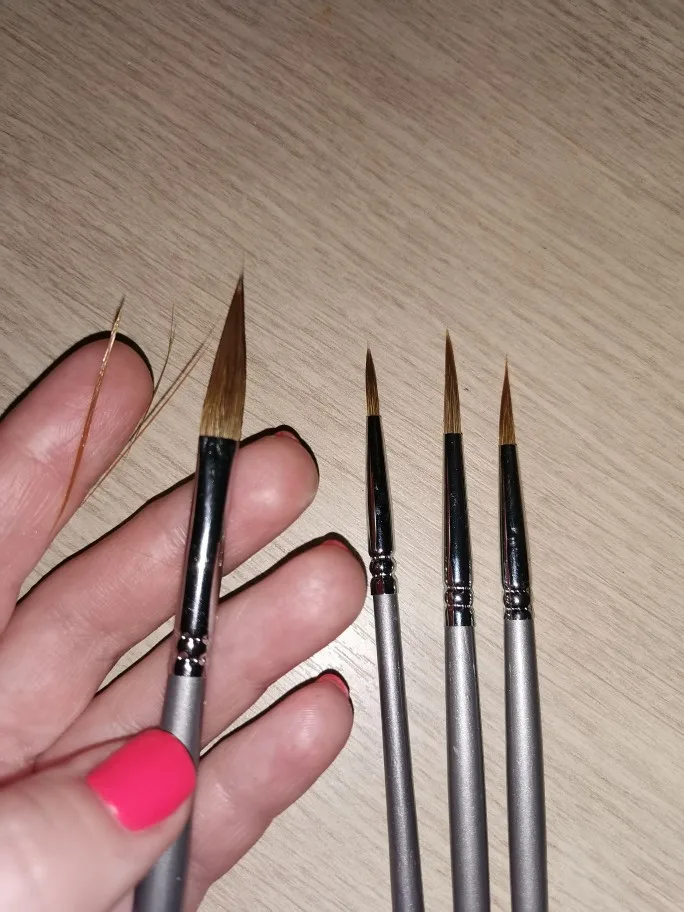 Как и в описании, очень хорошие кисти, я купил набор из 9 штук, и все они соответствуют тому, что предлагает реклама. Длина около 30 см. И они идеально подходят для изготовления тонких линий и деталей. Я попробовал их с масляной краской, и они работают очень хорошо, рекомендуется, они прибыли через 3 недели.