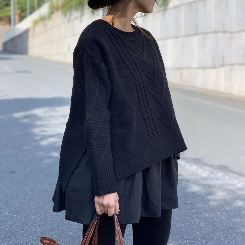 Осенний Черный женский свитер с длинным рукавом, корейский Модный пуловер с оборками в стиле пэчворк, Топы Harajuku, свитер большого размера, уличная одежда