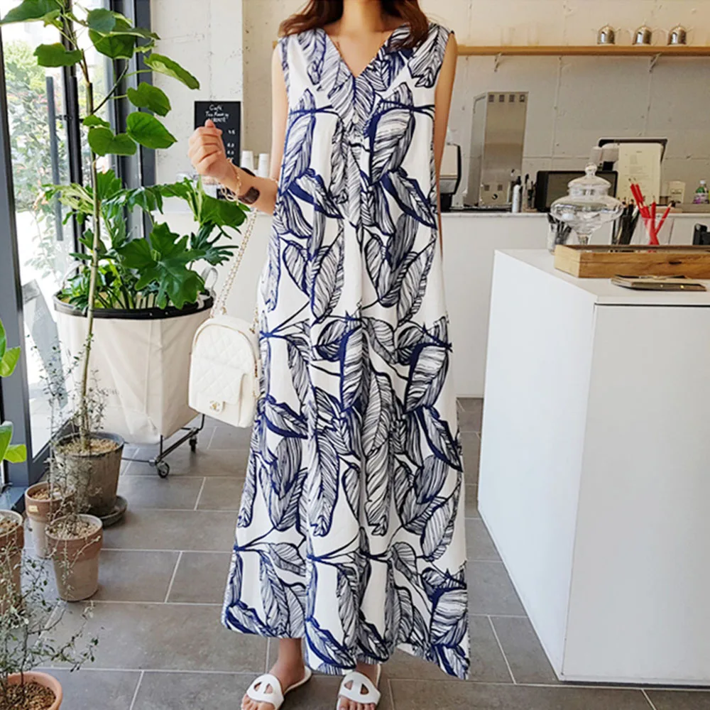 2020 Летний шифон без рукавов длинное платье тропический принт пляжный сарафан женское корейское платье большого размера для отдыха Макси Повседневное платье
