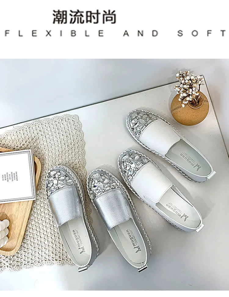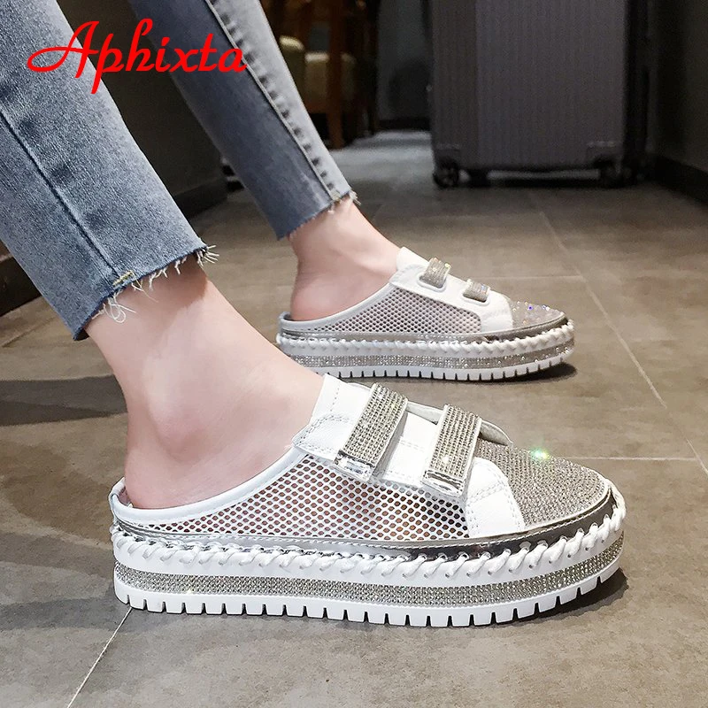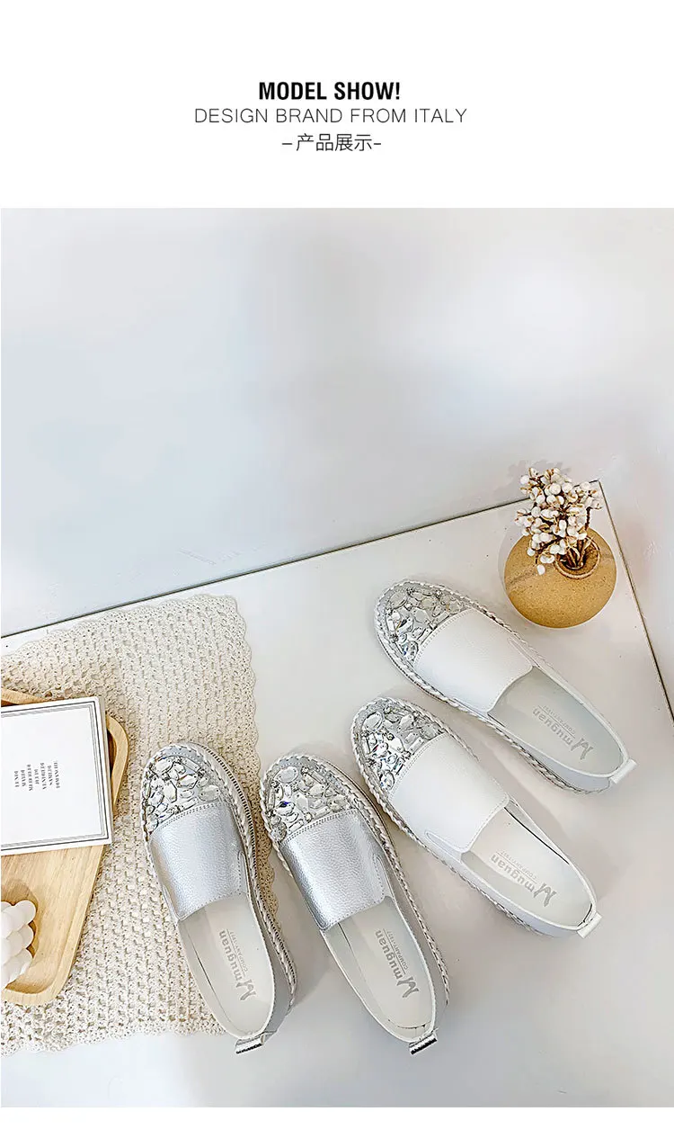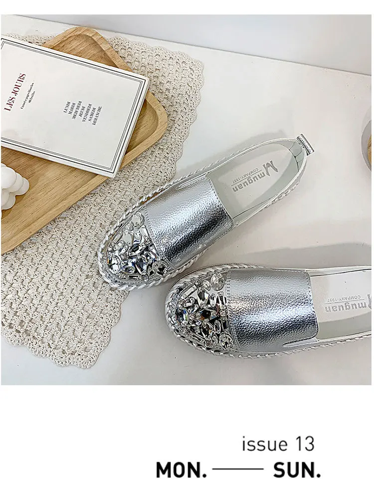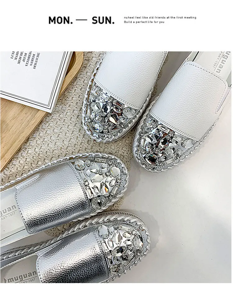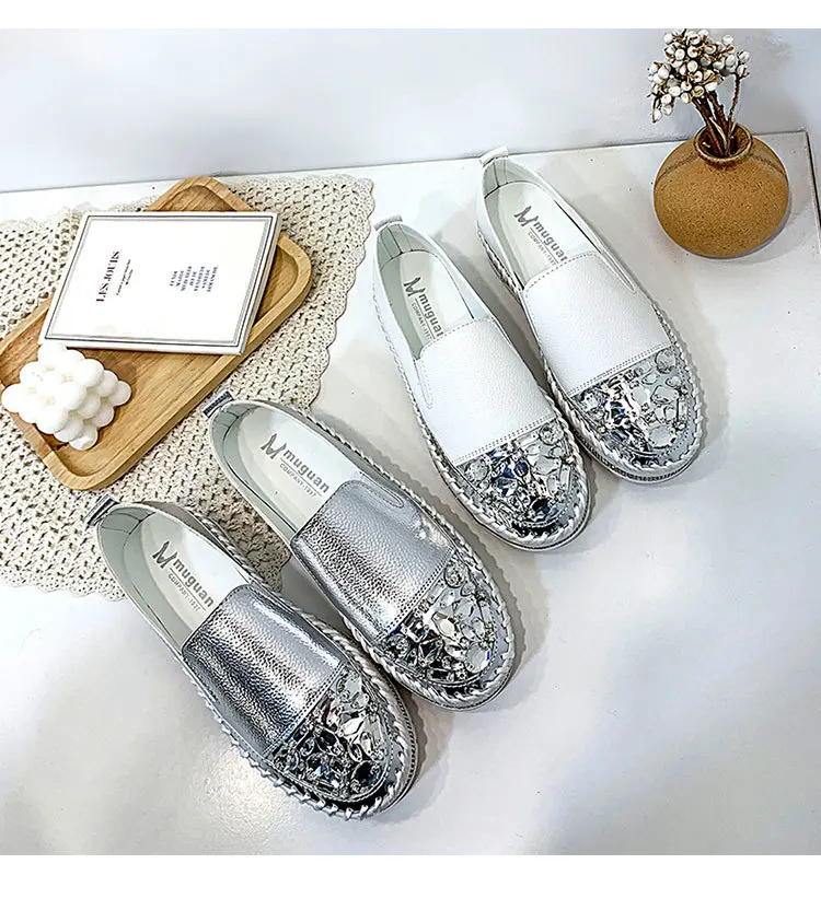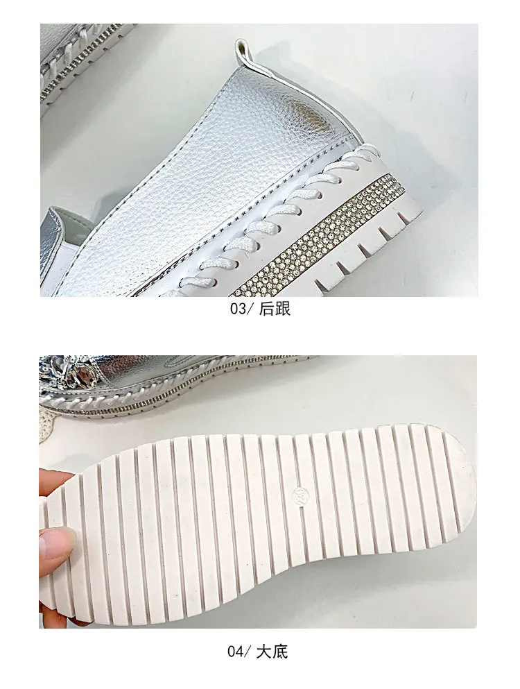 Женские кожаные туфли на плоской подошве Aphixta, серебристые лоферы с кристаллами, с круглым носком, на платформе, размер 43