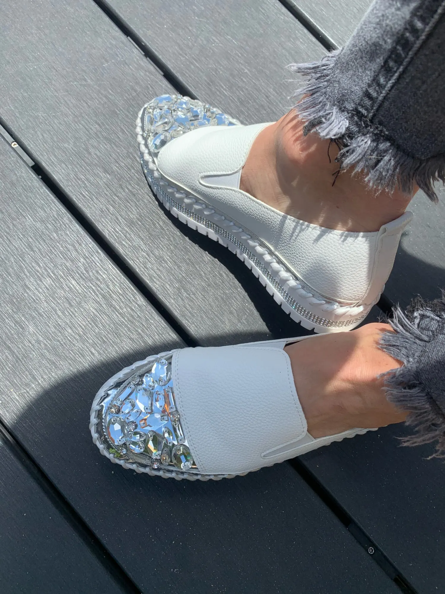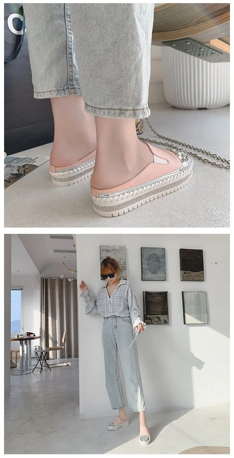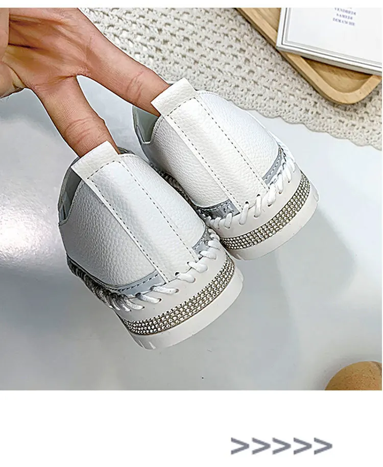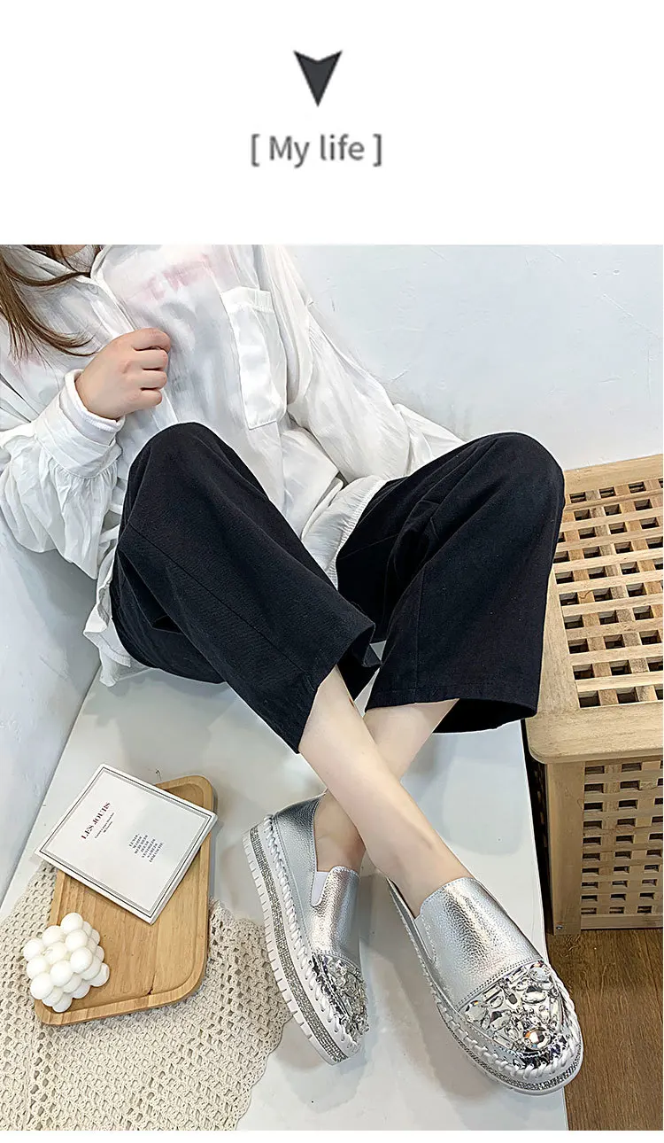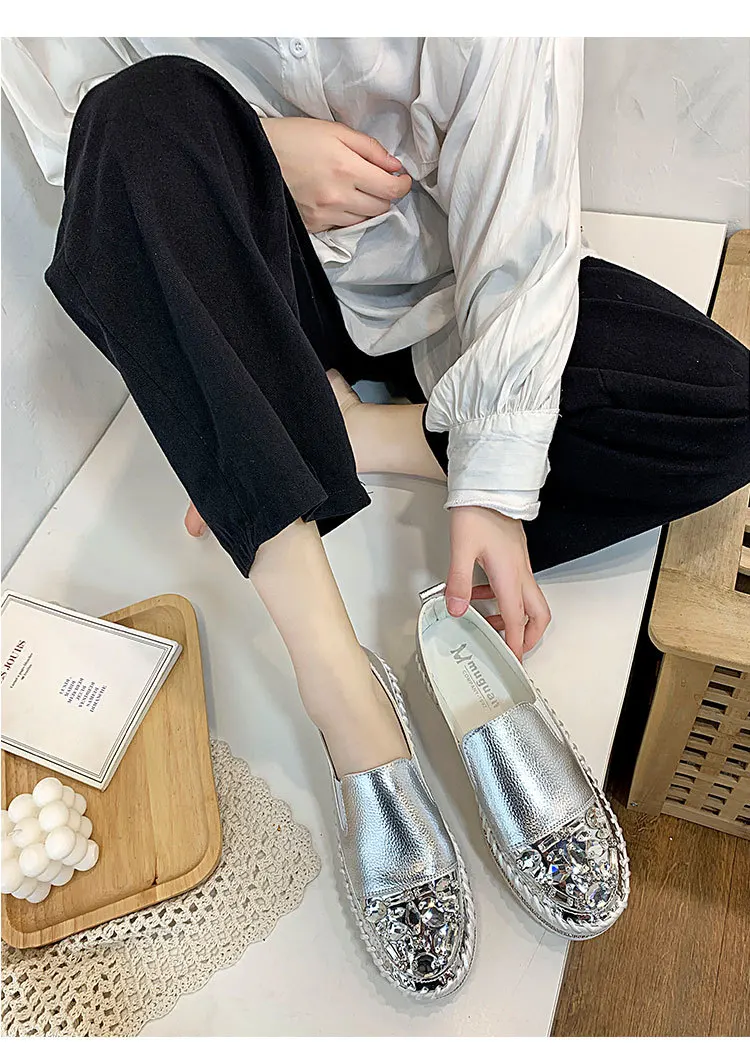 Женские кожаные туфли на плоской подошве Aphixta, серебристые лоферы с кристаллами, с круглым носком, на платформе, размер 43