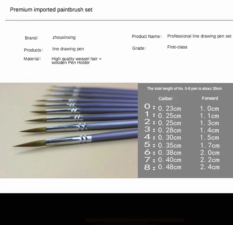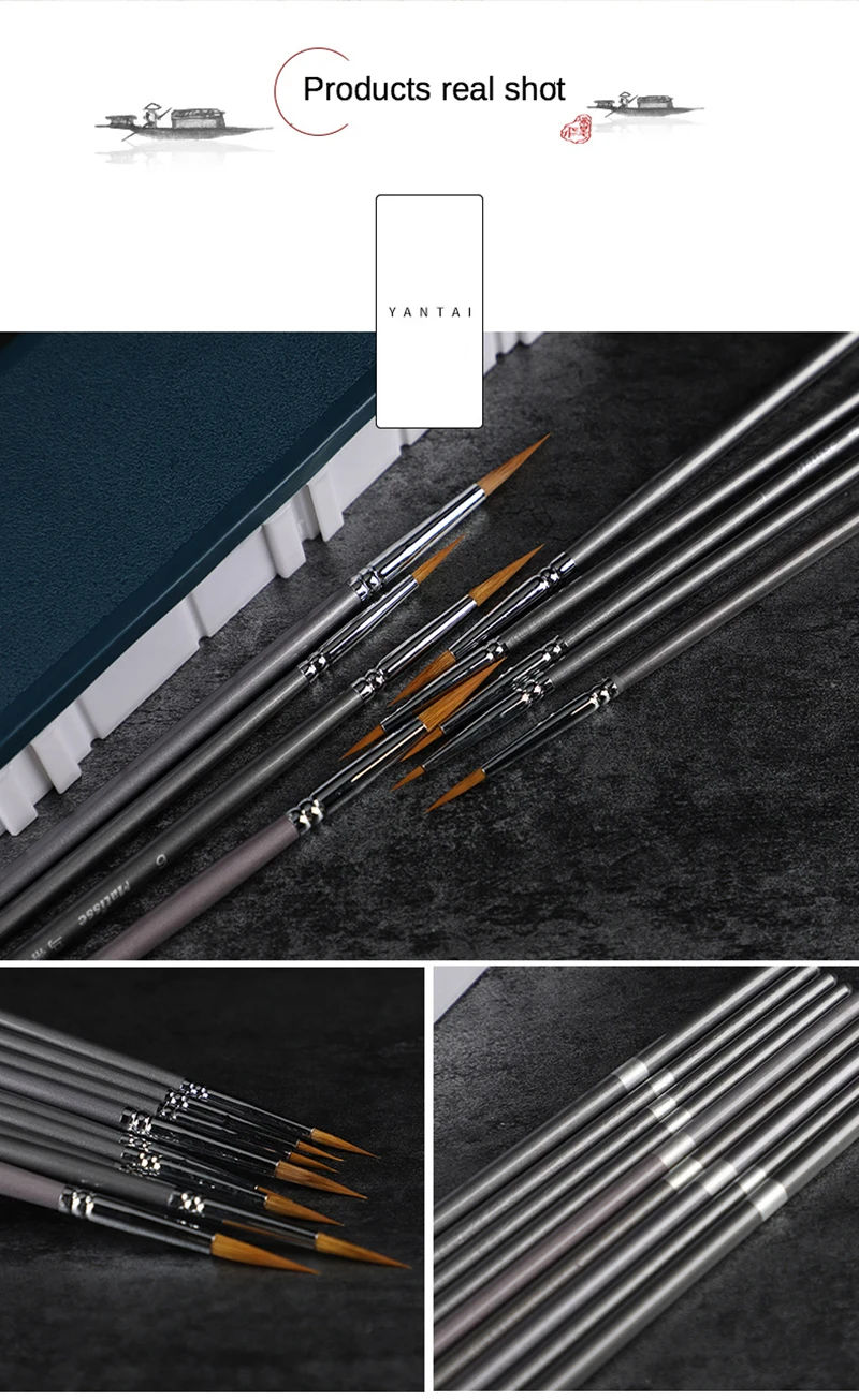 9 шт. художественная кисть для рисования из шерсти weasel, кисть для рисования акварелью, гуашью, маслом, ручка с крючком для рисования, прочная тонкая серебристая ручка в виде березы