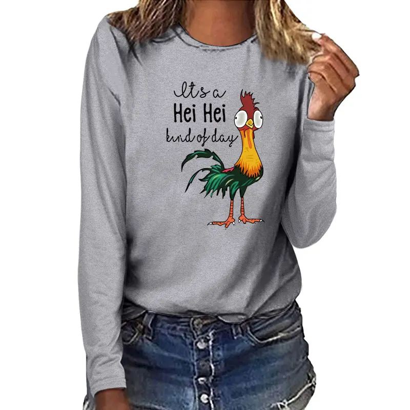 Женская футболка с длинным рукавом, круглым вырезом и принтом