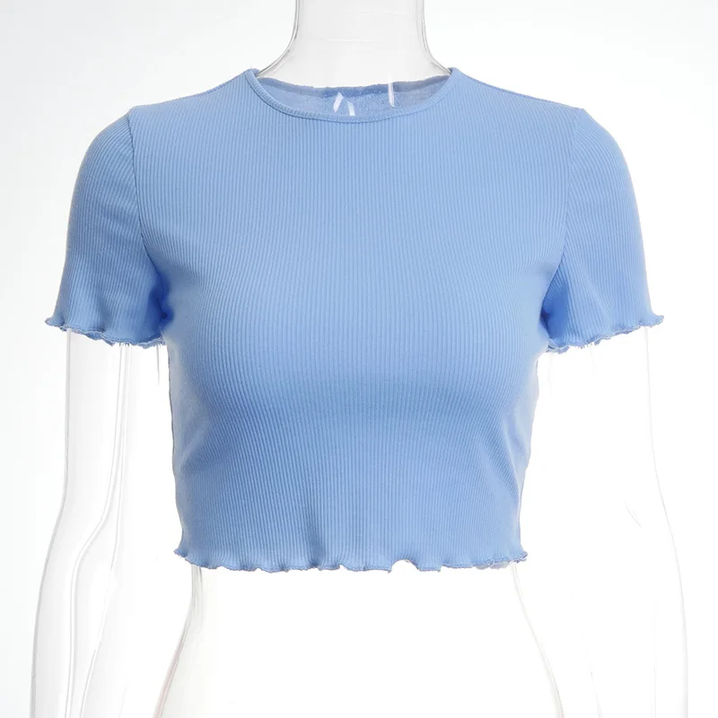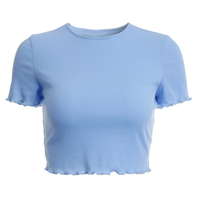 Топ женский в рубчик, с оборками и коротким рукавом, AS41290, лето 2020