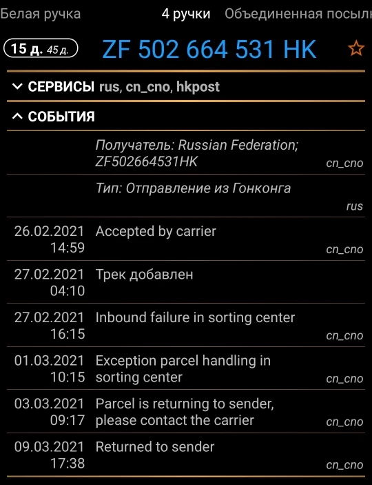 Посылка была возвращена отправителю:-( На мои сообщения в чате заказа за неделю так никто и не ответил. Спор с возвратом закрыл Али в мою пользу...
