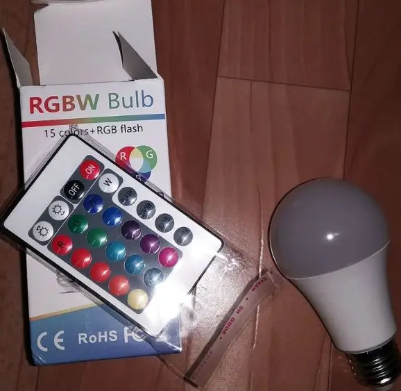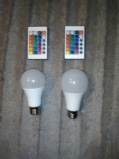скажу, всем кто интересуется, если вы заказываете одинаковые лампочки пульт подходит к обеем, хотя я заказывал одинаковые, но у разных продавцов, одна коробка пришла помятая, и я не знаю какой продавец прислал, так как забыл посмотреть, но рекомендую для ночника 5w, но для освещения комнаты маловато 5w, цвет меняет красиво, есть режимы, короче доволен, пульт идет без батарейки, она должна быть плоская как на материнке или в некоторых часах, короче поняли наверное.