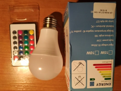 Покупал две лампы - одну 15 Вт, другую 10 Вт. В итоге реальная мощность обоих ламп составляет 6.7 Вт - проверил на ваттметре. Т.е. продавец вместо 15 Вт положил 10 Вт, хотя на упаковке было написано 15 Вт. Будьте внимательны. Покупал со скидкой, поэтому спор не стал открывать. С купонами и промокодами из группы вконтакте GXSmart заплатил за одну лампу 140 руб. (или 1.86$). Пульт приходит без батарейки. На нём написано 2025, хотя подходят и более ходовые батарейки 2032. На пульте есть программа с резкой сменой цвета и плавной, также можно менять яркость.