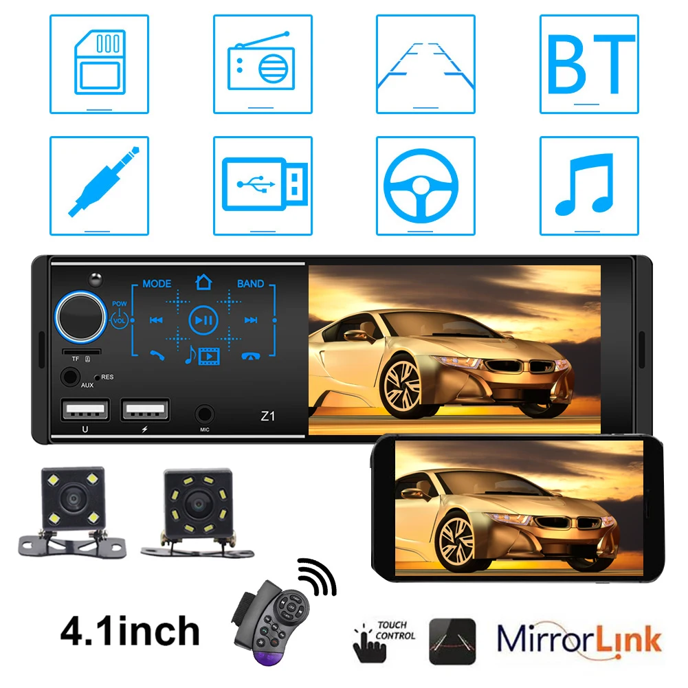 Автомобильный радиоприемник с сенсорным экраном 4,1 дюйма, стерео, Bluetooth, U-диск, AUX, 2 USB, MP5 плеер