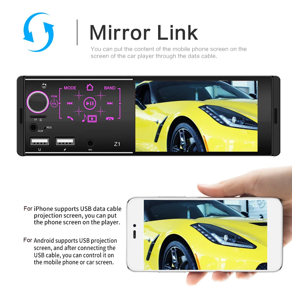 Автомобильный MP5 play с сенсорным экраном 4,1 дюйма имеет разрешение HD и поддерживает воспроизведение в нескольких форматах.