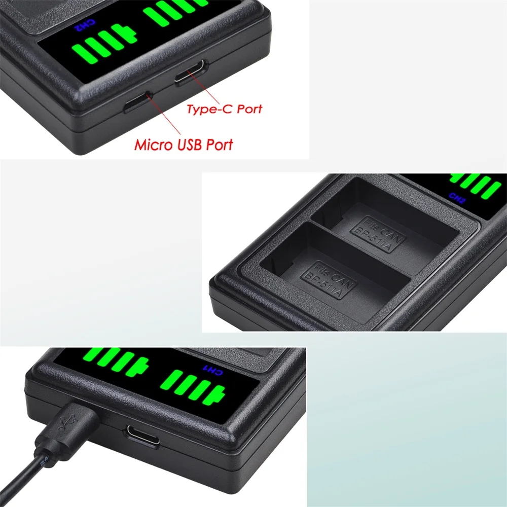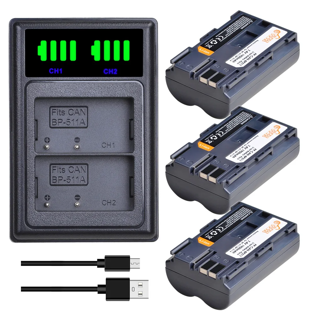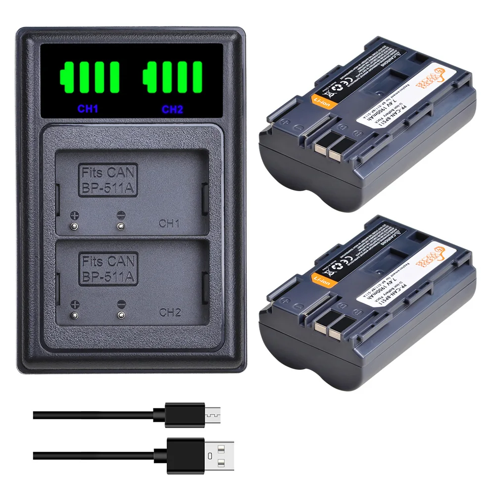Аккумулятор BP-511 1900 мАч + двойное зарядное устройство для Canon EOS 40D 300D 5D 20D 30D 50D 10D D60 G6 BP-511A