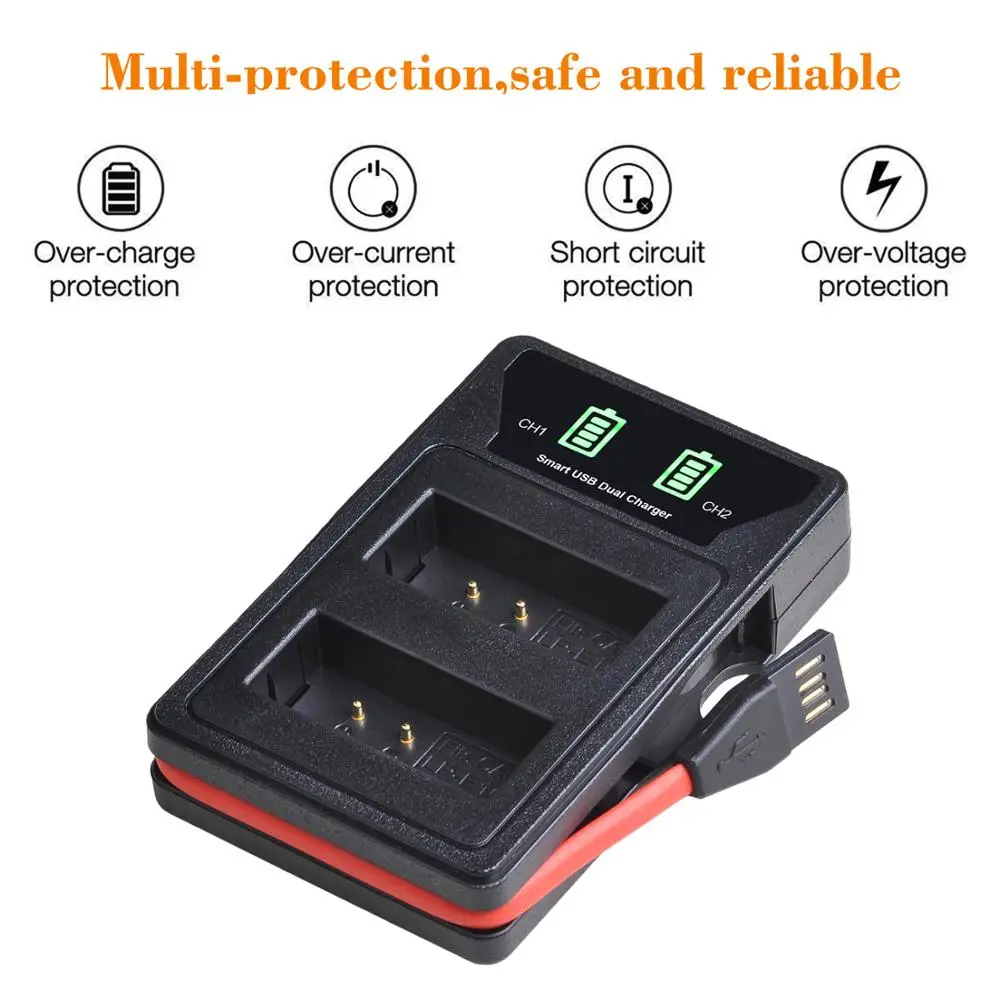 2-канальное Зарядное устройство: заряжайте два аккумулятора одновременно и быстро, значительно экономьте ваше время. Такой дизайн подходит для дальних поездок и быстро удовлетворит ваши потребности.