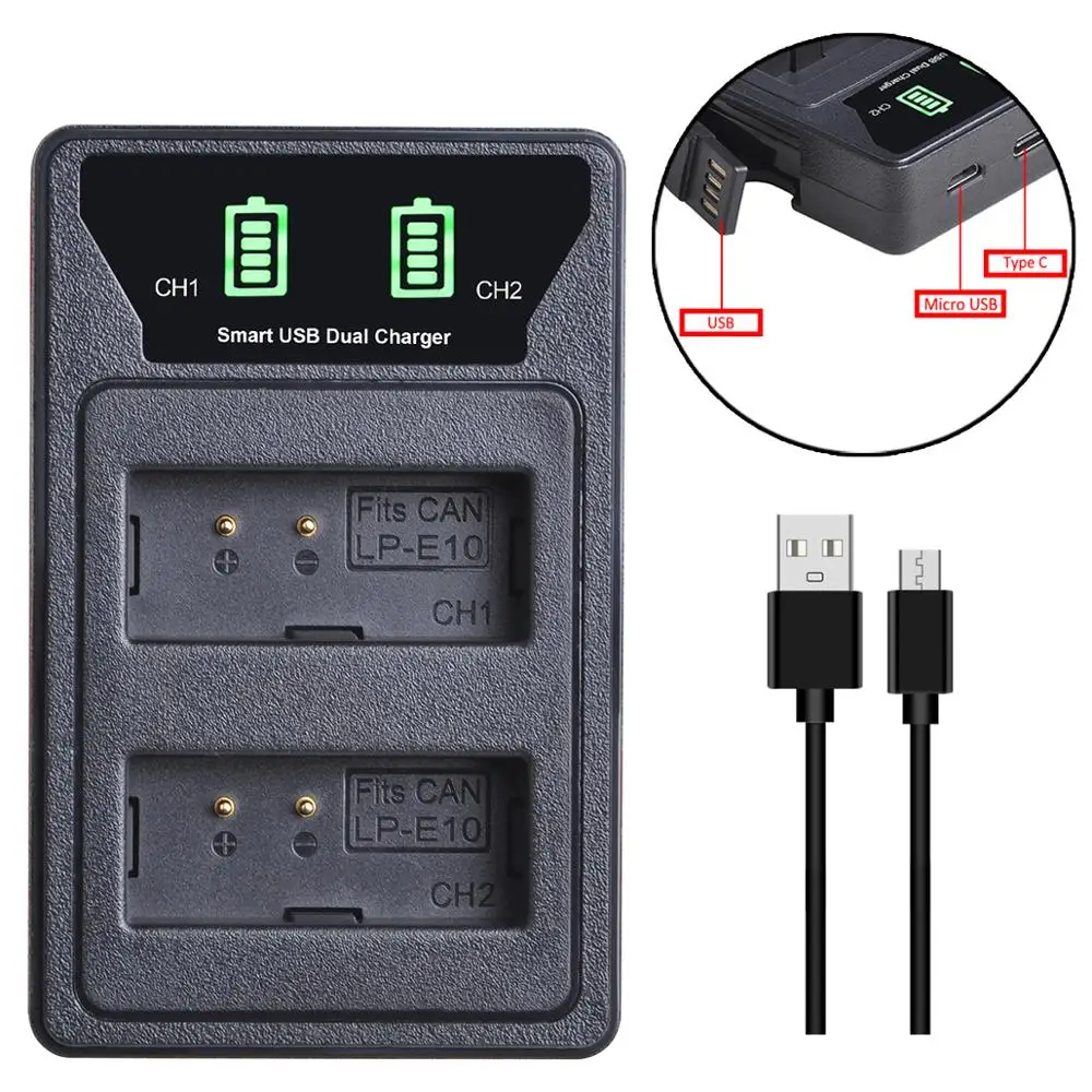 Зарядное устройство LP-E10 LPE10 LP E10 + со светодиодсветодиодный подсветкой, двойное зарядное устройство USB для Canon 1100D 1200D 1300D 2000D Kiss X50 X70 Rebel T3 T5
