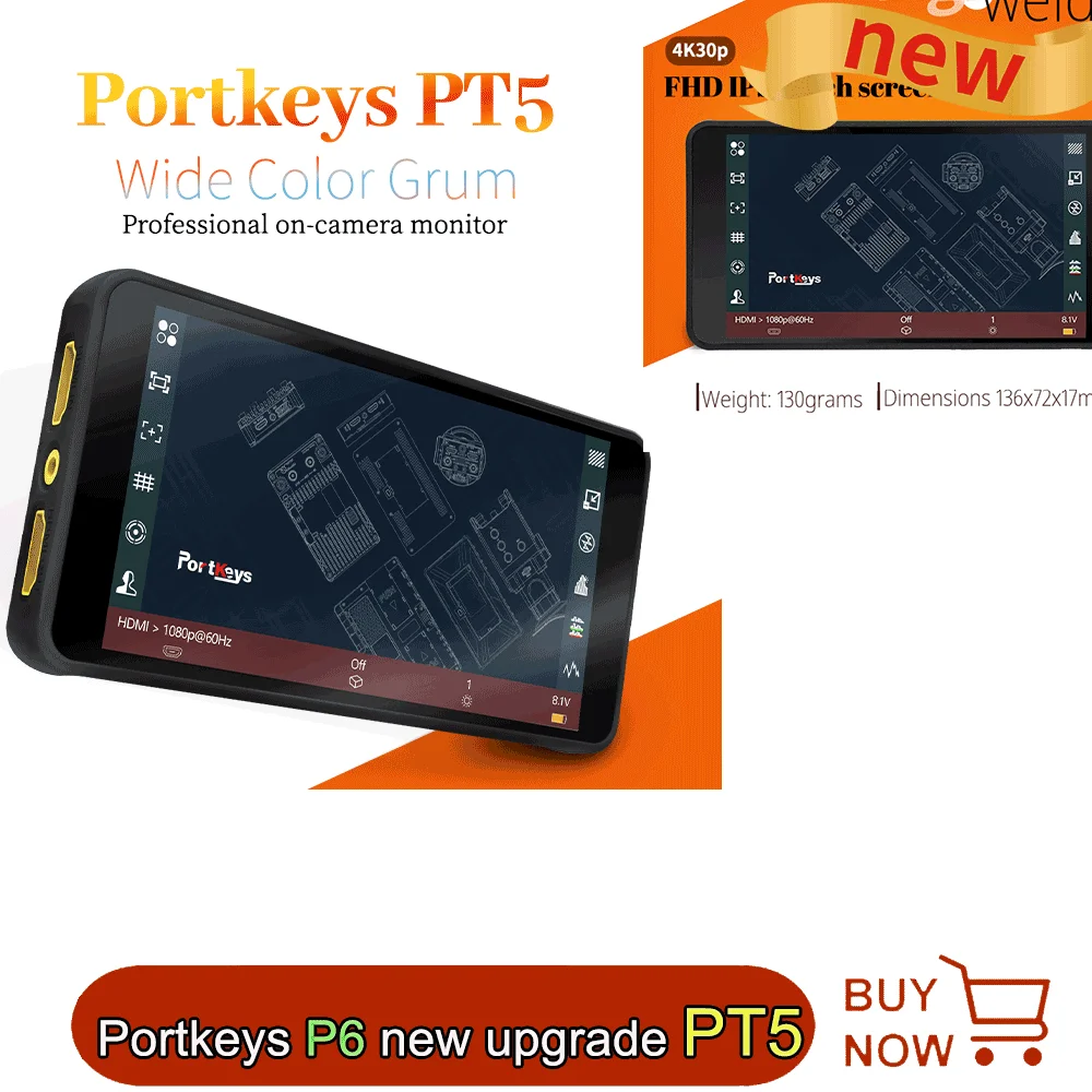 5-дюймовый монитор Portkeys PT5, 5 дюймов, 4k, Hdmi, сенсорный экран, 500nit, ультратонкий, с поддержкой 3d Lut, 1920*1080, для камеры Dslr P6, новое обновление