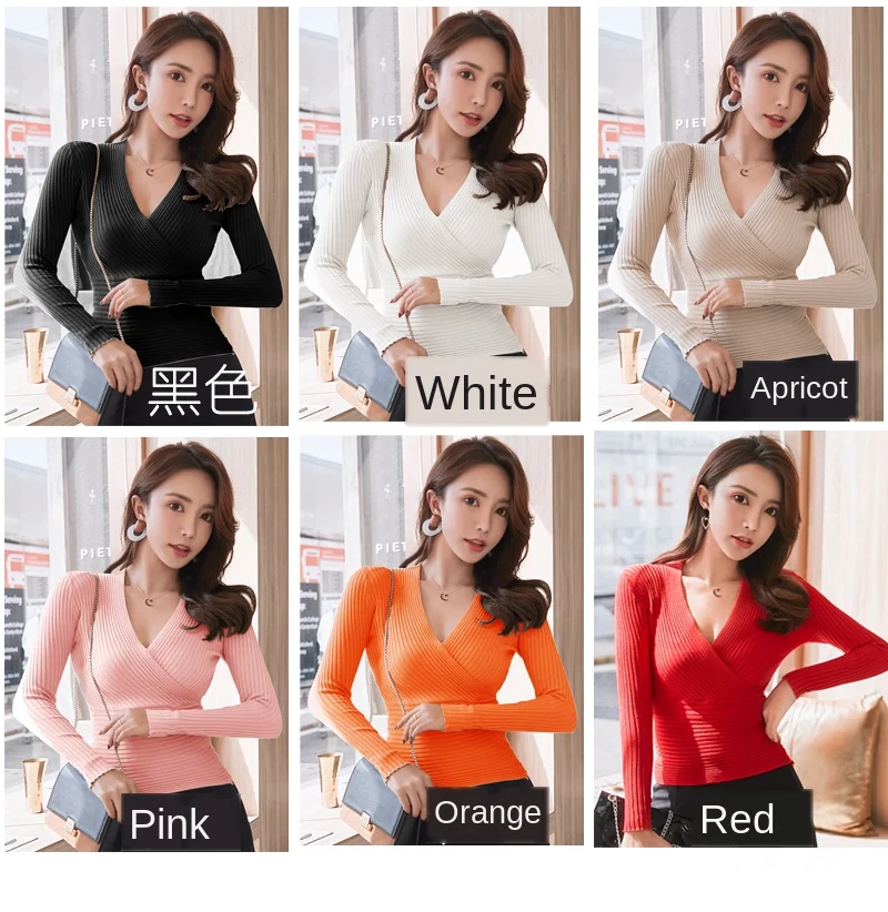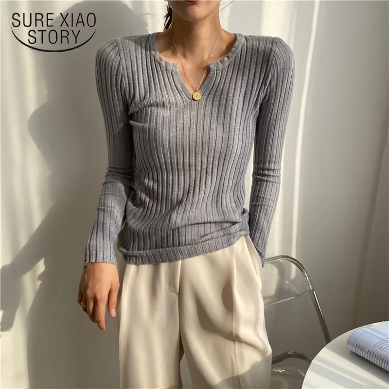 Однотонный трикотажный свитер с V-образным вырезом, вязаный свитер, женский осенне-зимний облегающий хлопковый пуловер с длинным рукавом 2022, Корейская зимняя одежда для женщин 10452